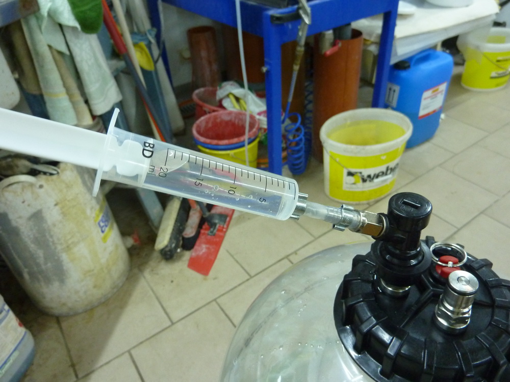 Zu deiner Frage Herbert: Ob es mit der Spritze klappt, kann ich dir nicht sagen - da noch nie ausprobiert. Ich habe eine Beergun mit der ich meine Proben ziehe. Je nachdem wie viel Druck sich in deinem Behälter befindet, würde ich von der Idee mit der Spritze abraten....