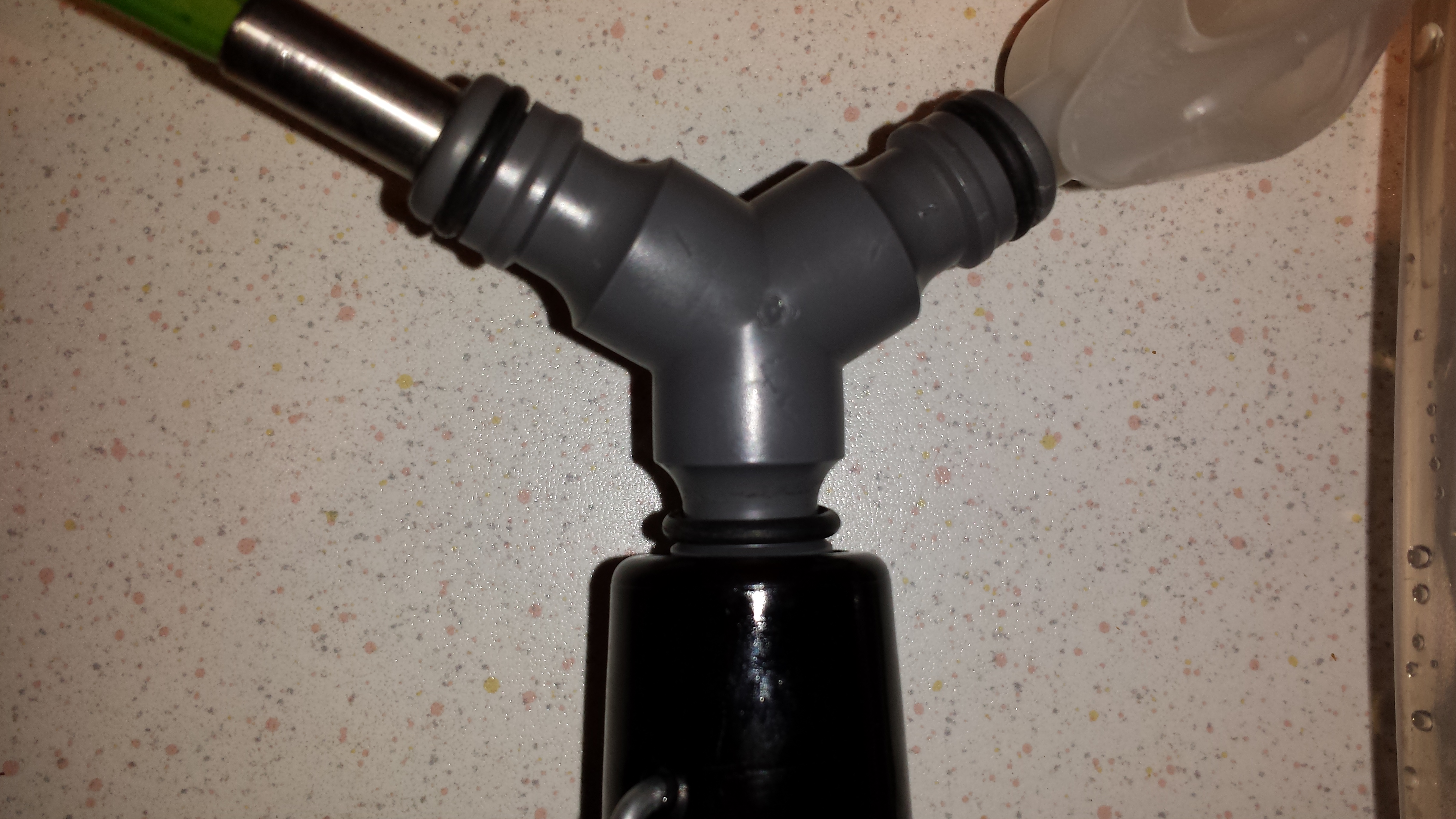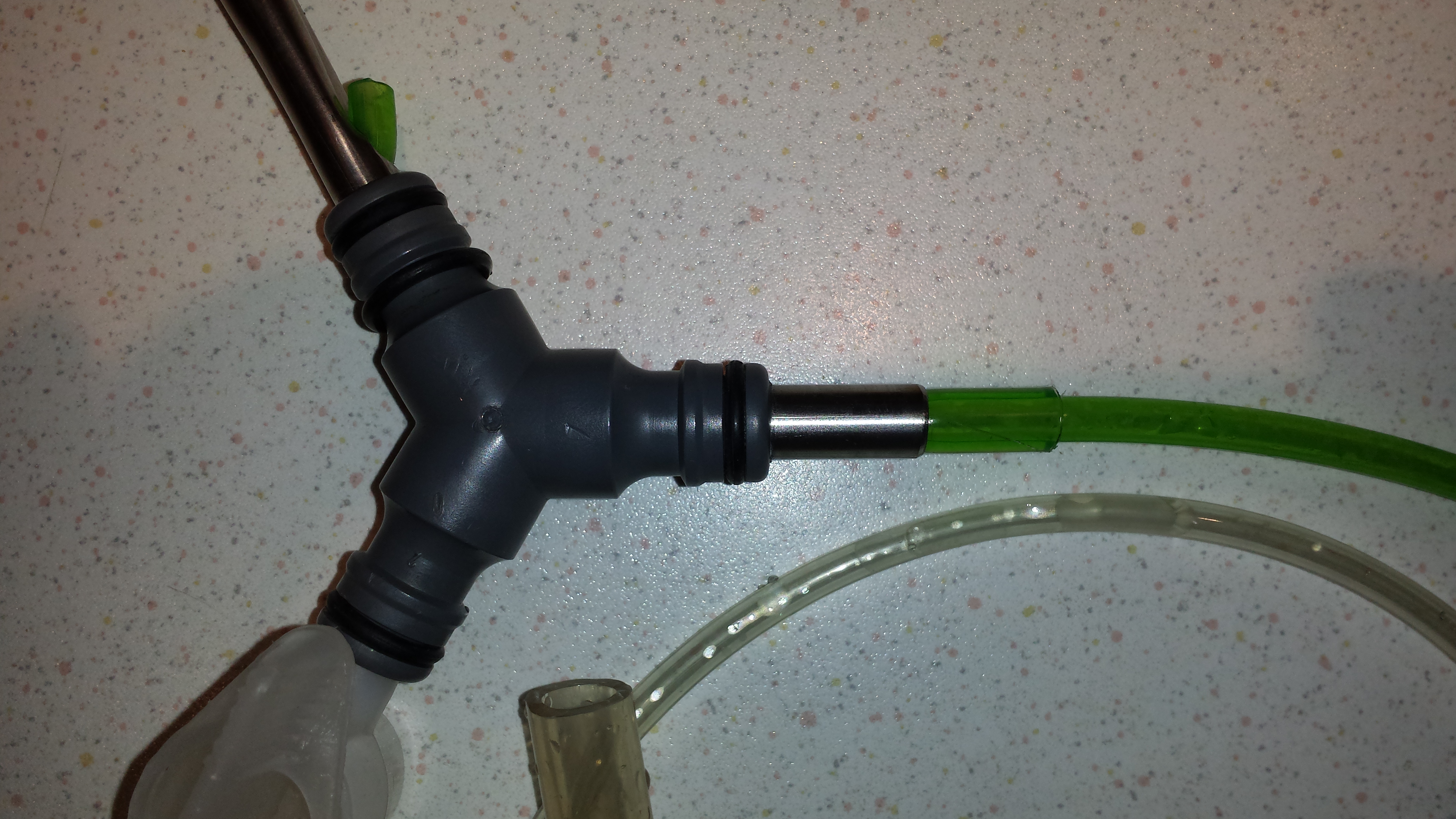 Klingt unmöglich, aber es geht tatsächlich ganz gut, wenn man die Biegung des Schlauches so hindreht, dass sie in Richtung des Abzweiges zeigt.