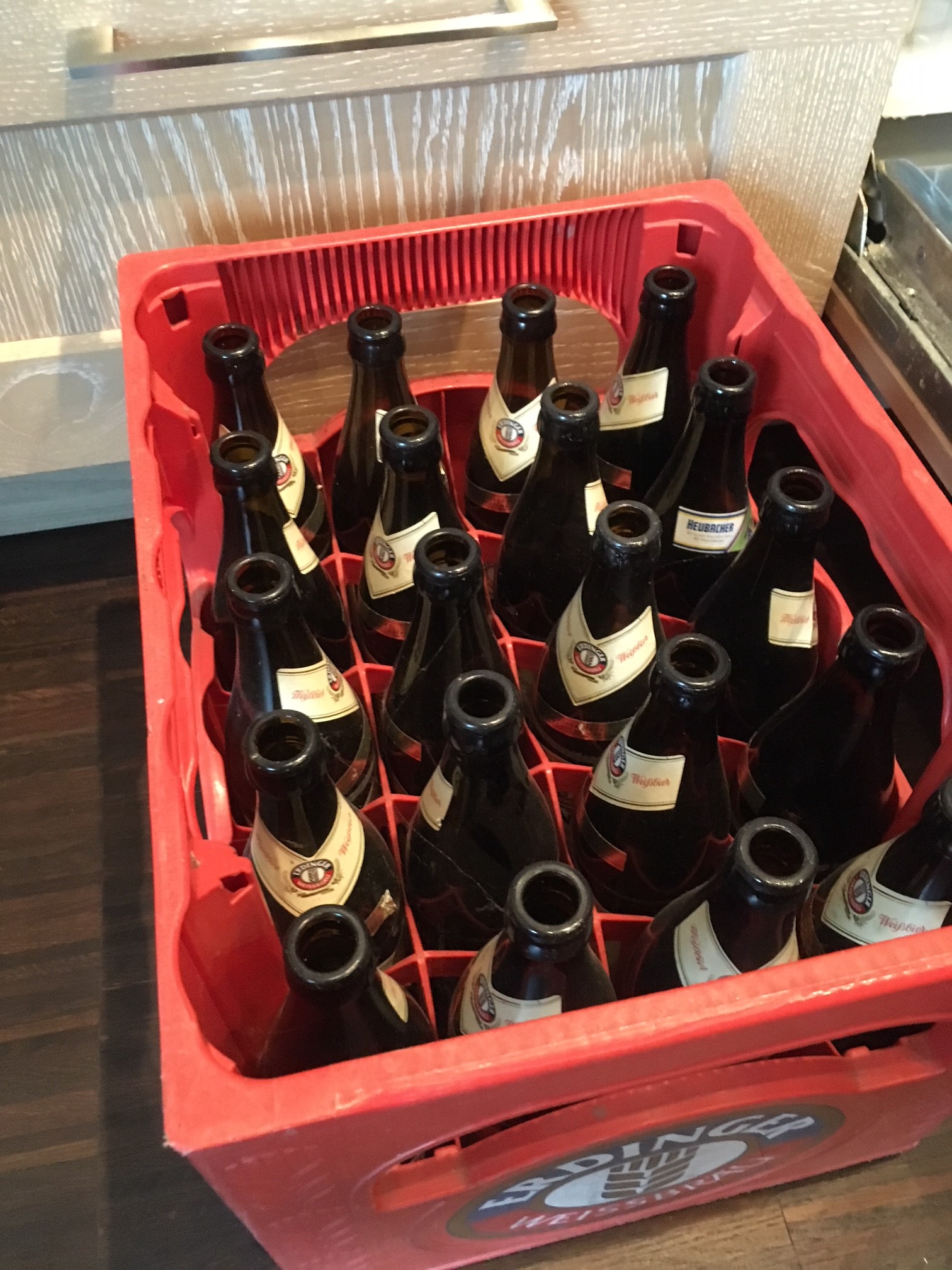 Im Keller hab ich noch einen verstaubten uralten Kasten Erdinger gefunden mit Etiketten, völlig eingetrockneten Bierresten, Schimmel und was sonst noch alles im Laufe der Zeit da so reingekommen sein mag gefunden.