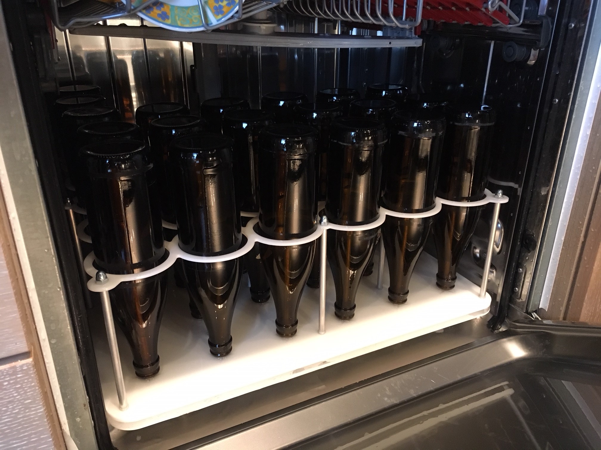 Hier werde ich natürlich verschiedene Varianten, bzw. Adapterplatten machen. Für eine optimale Reinigung sollten die Flaschen möglichst senkrecht stehen.