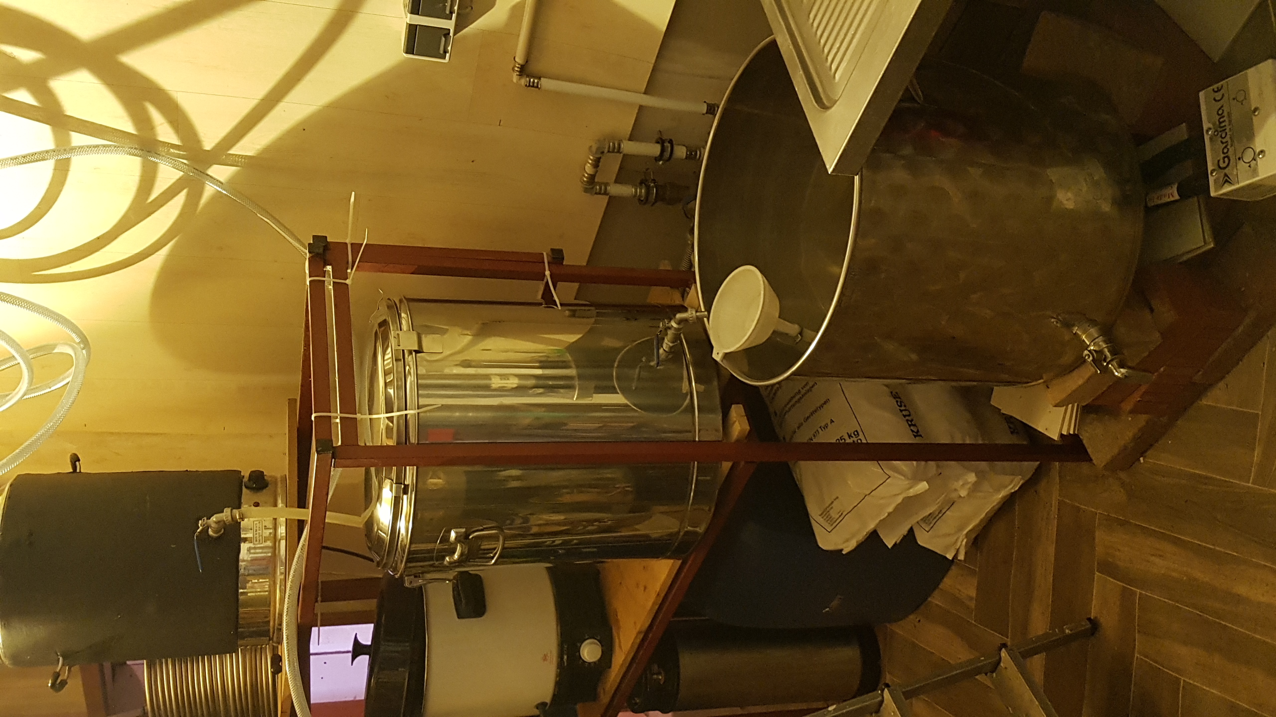 Für diesen Testsud ist die größe der Anlage natürlich deutlich überdimensioniert, aber ich wollte es einfach mal auf die Schnelle ausprobieren und war zu faul den 40l TP vom Dachboden zu holen. :redhead