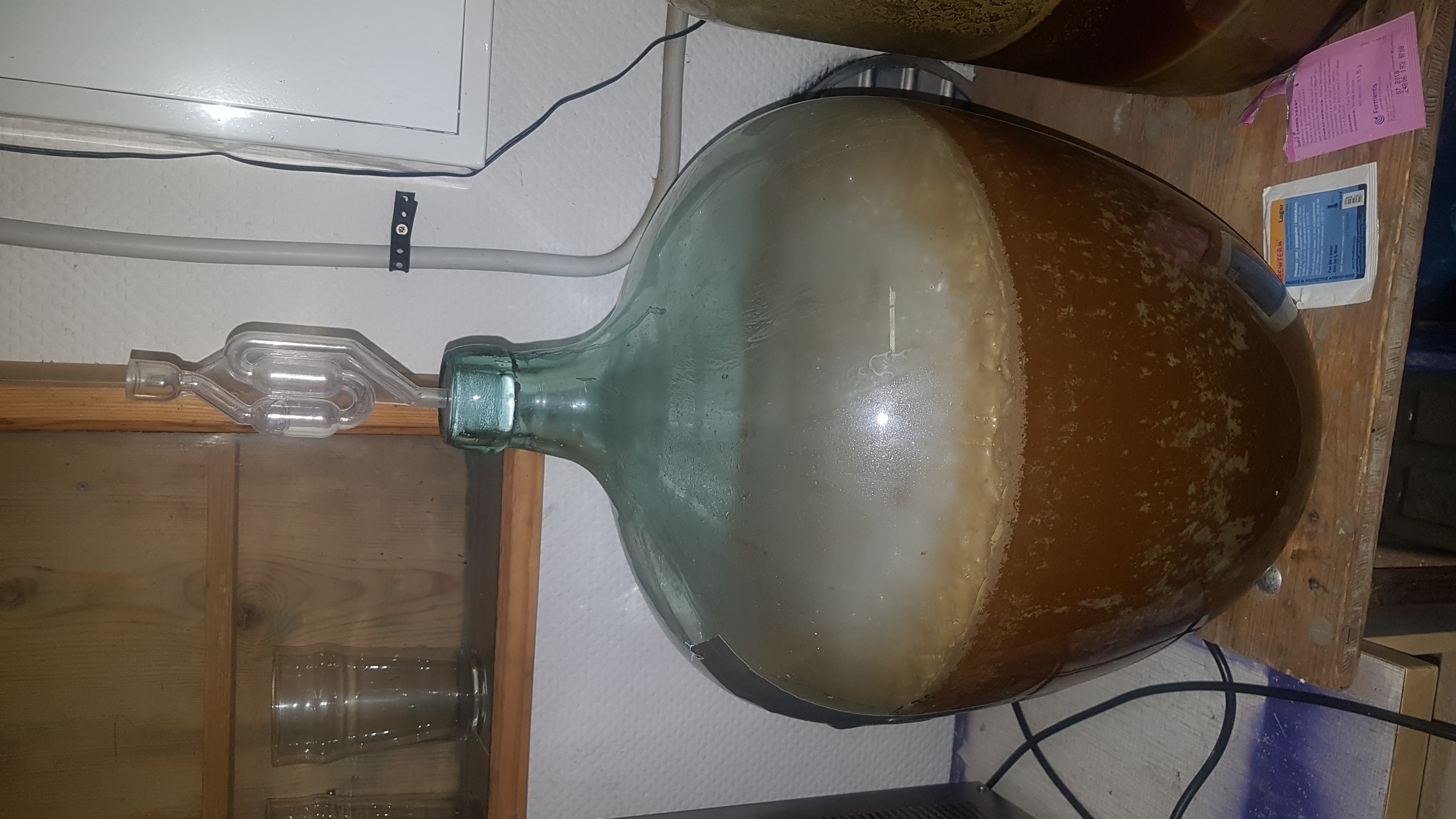 Weinballon aus Omas Keller mit 20l untergärigem Rauchbier vom vorherigen Brautag
