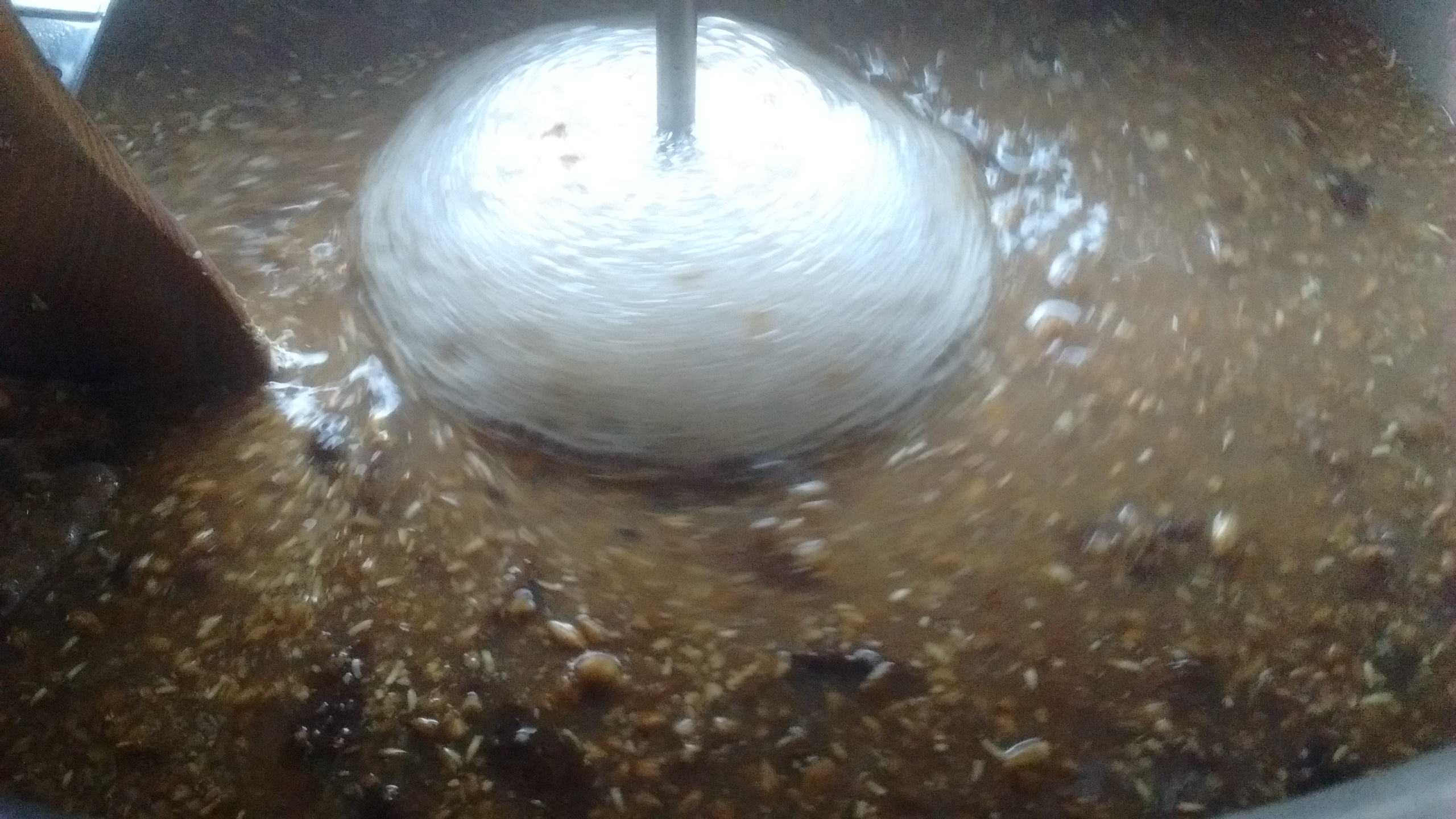 Bis zum Läutern war auch alles schick, dann fiel mir ein, dass ich einen nicht unerheblichen Anteil Roggenbrot genommen hatte und leider auf die Gummirast verzichtet hatte :Ahh Außerdem lief die ganze Zeit das Rührwerk, so dass ich eine schicke Schleimpampe hatte...