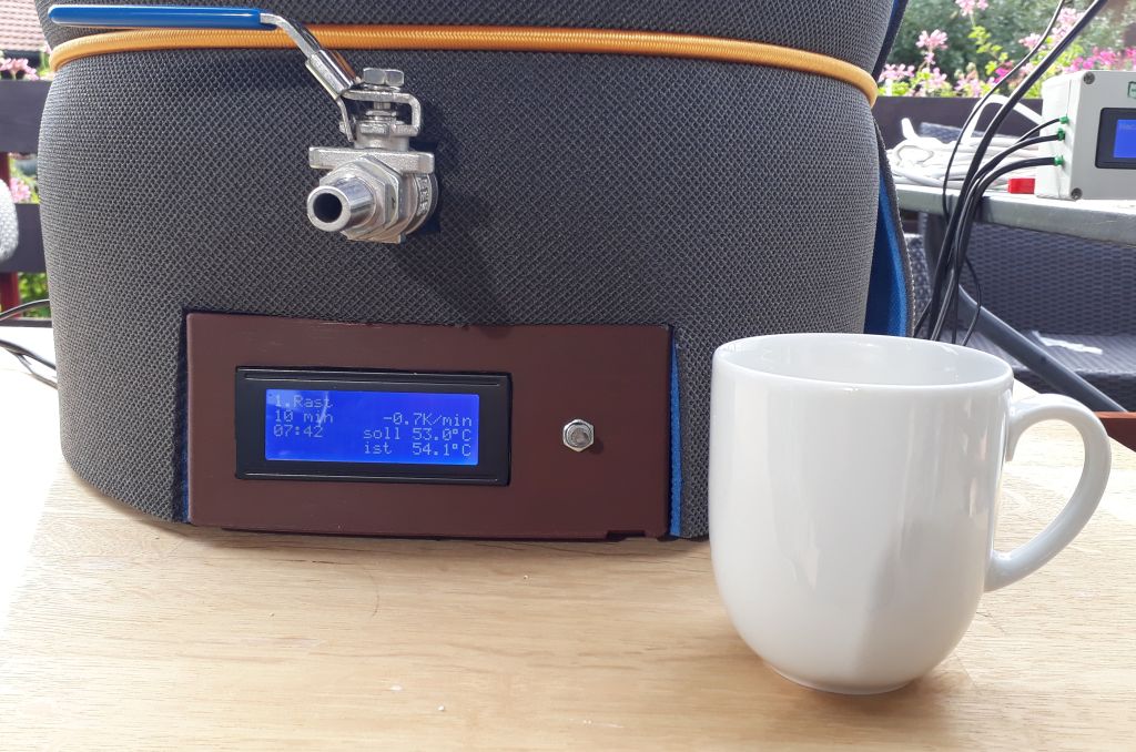 Die Einmaischtemperatur ist erreicht, Zeit für die Rasteneingabe. Ich benutze eine etwas angepasste Version der BierBot mini Steuerung.