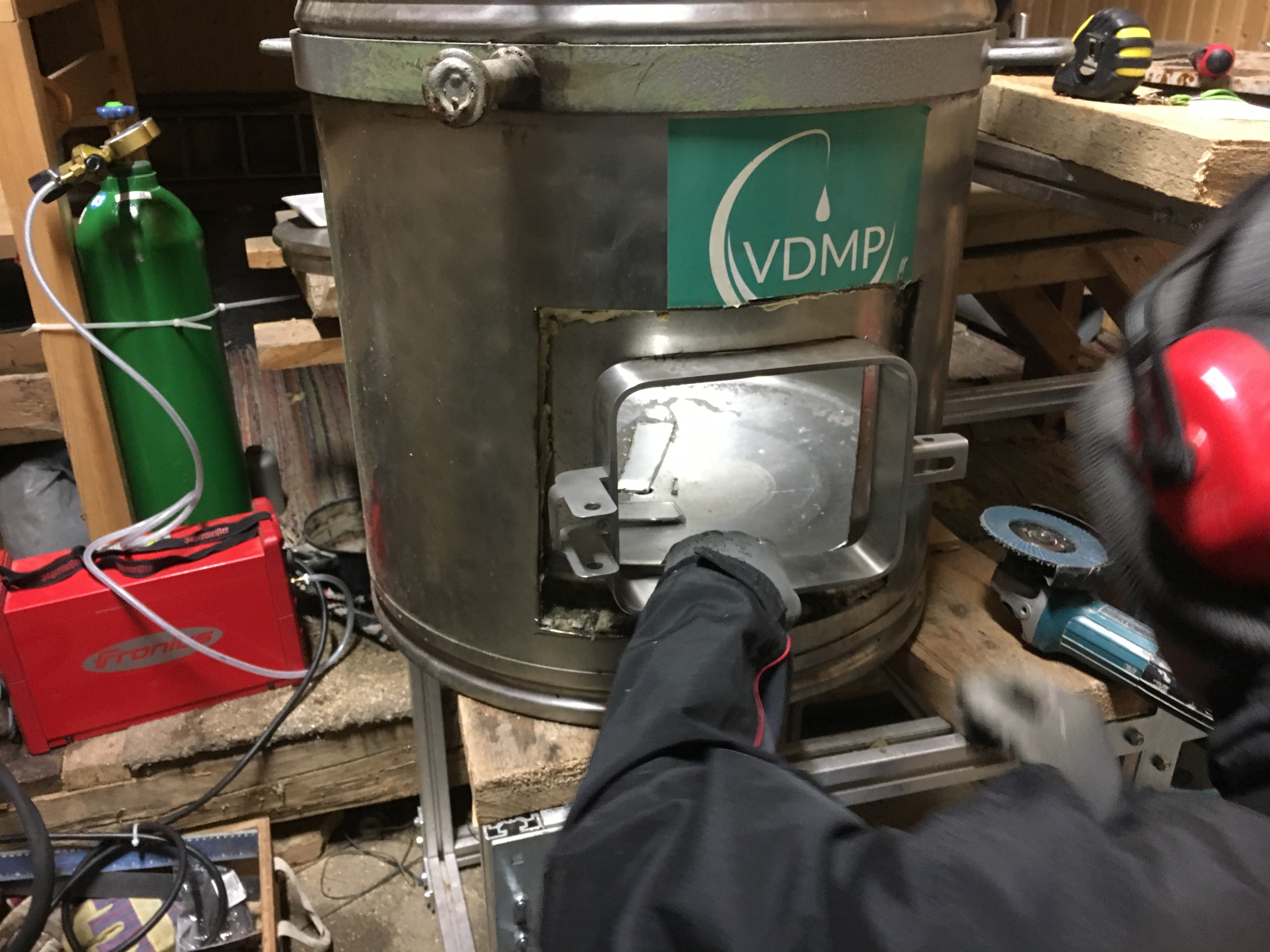 Eigentlich wollten wir am verlängerten WE in AT auch brauen. Tja leider hatte die Wasserversorgung ein kleines Keim Problem und hat kurzerhand das Wasser gechlort. Natürlich suboptimal zum brauen- also wird gebaut und modifiziert. Mein Spezl hat gut 4h gebraucht um den Tank passgenau fürs Mannloch aufzuflexen: