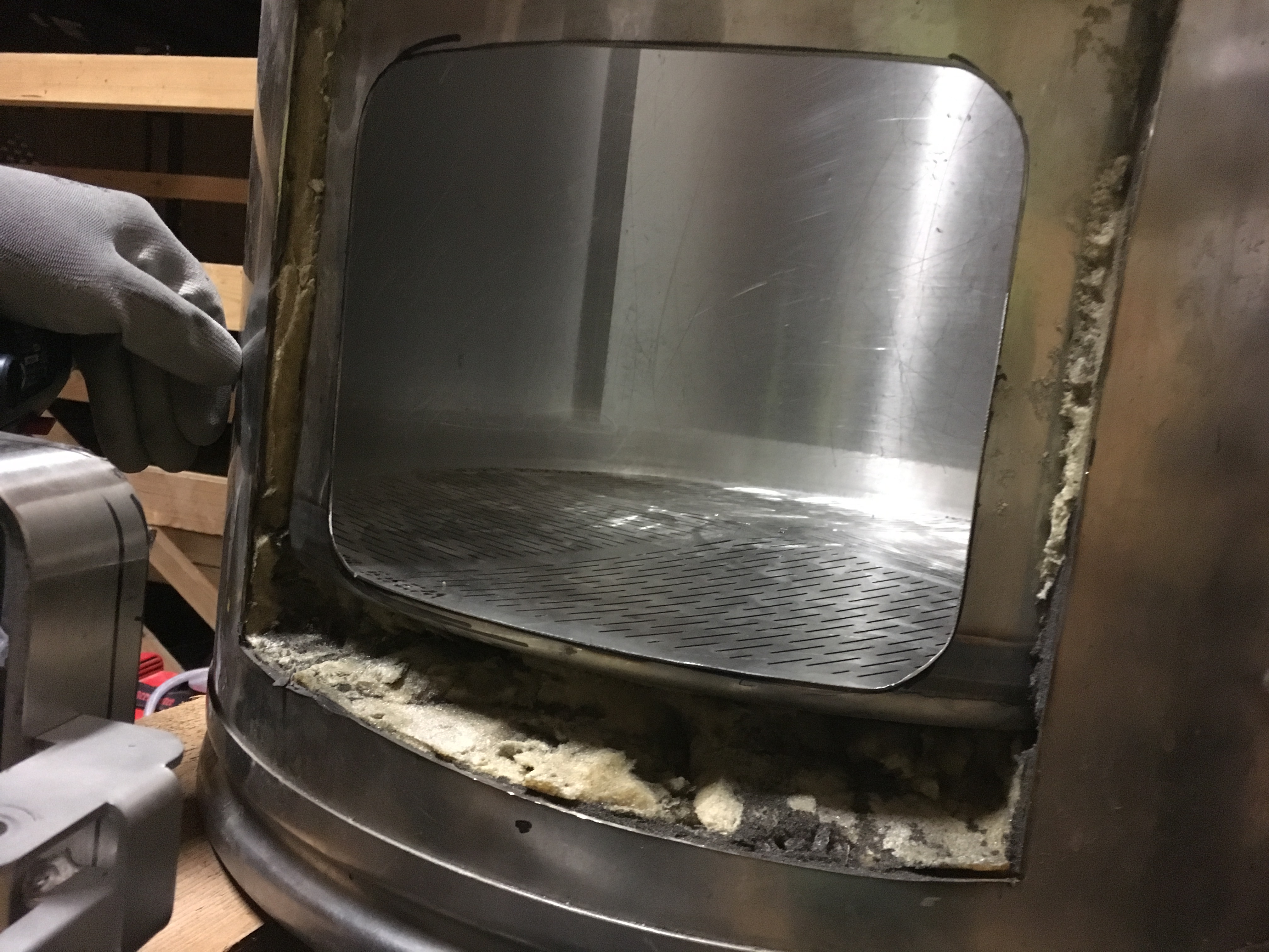 die Woche wird das Mannloch erodiert um den gleichen Radius wie der Milchtank innen zu haben. Dann müssen wir es einschweißen und uns überlegen wie wir die Isolation vom Tank wiederherstellen und das Ganze wieder verschließen.