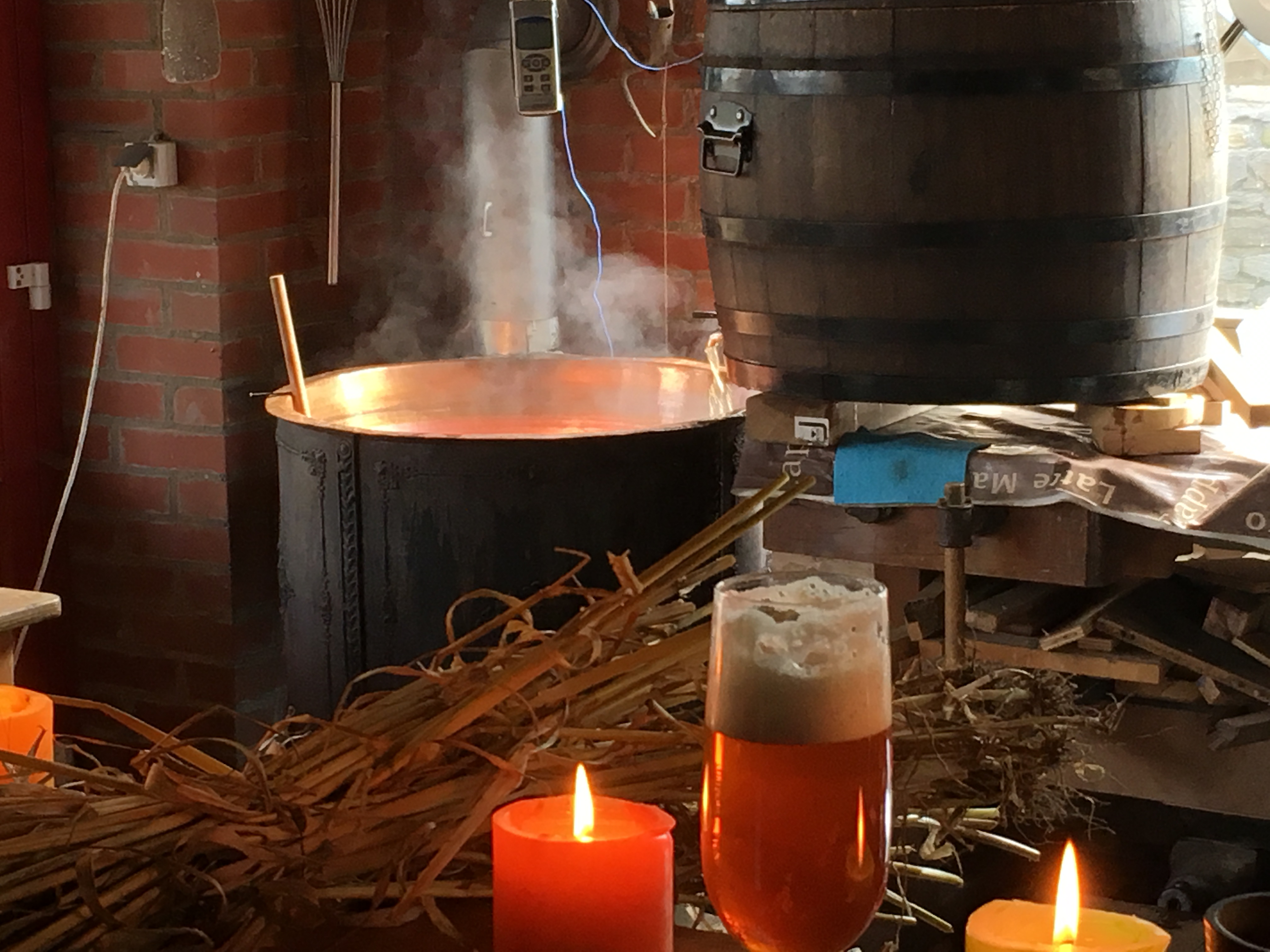 Zum Thema Brauen mit Backsteinen als Einfassung für das Feuer.