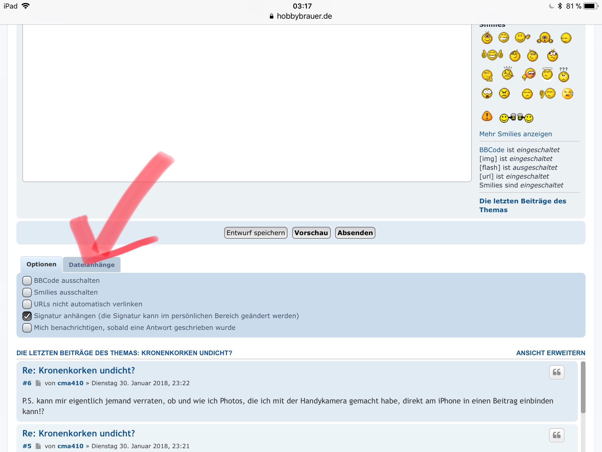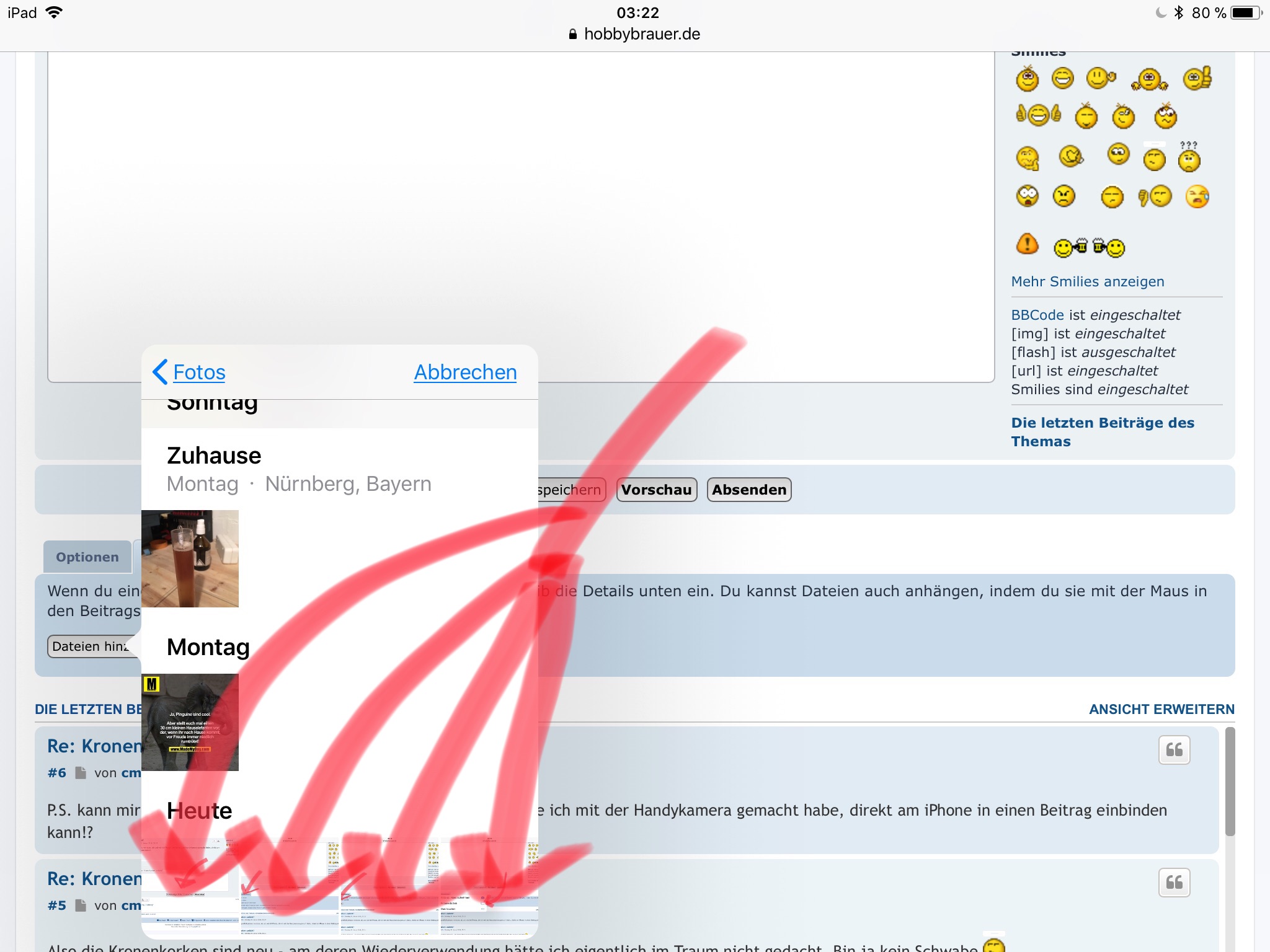 P.S. kann mir eigentlich jemand verraten, ob und wie ich Photos, die ich mit der Handykamera gemacht habe, direkt am iPhone in einen Beitrag einbinden kann!?