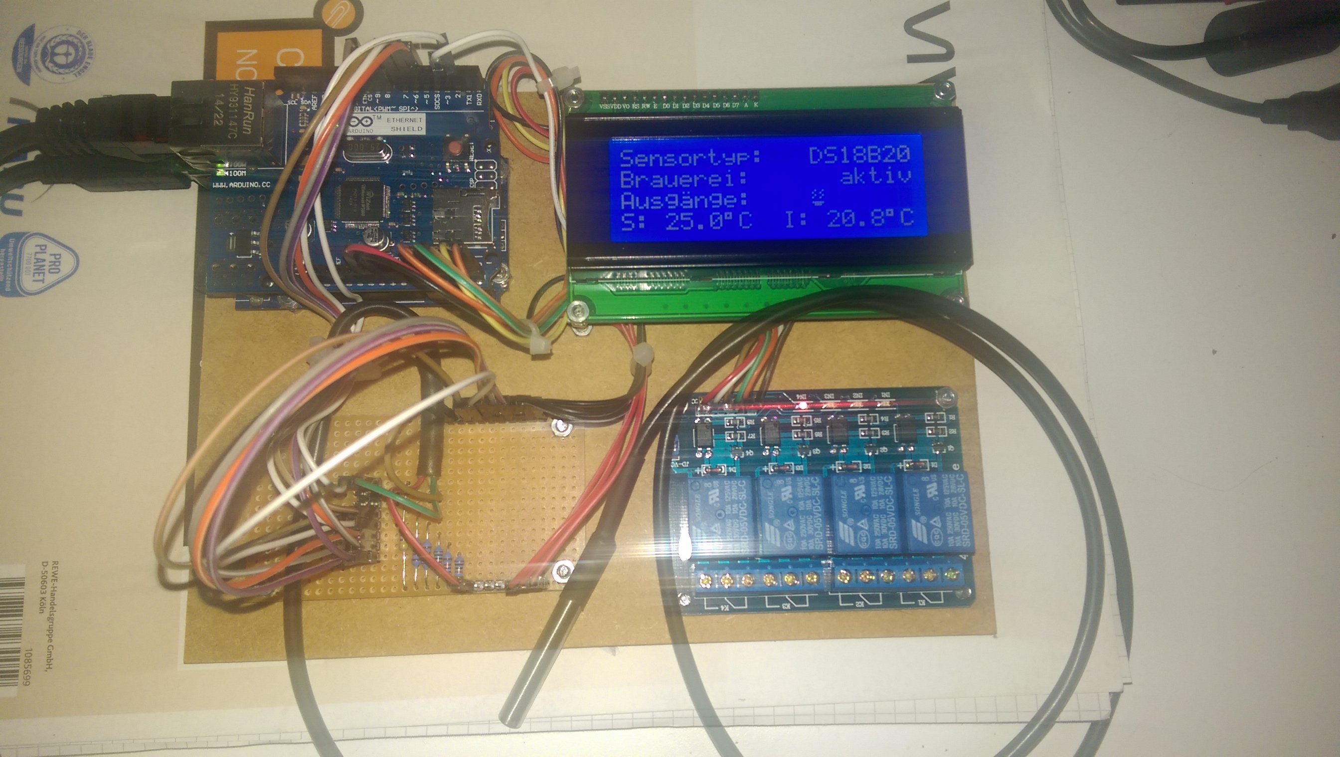 Was daraus geworden ist, ist etwas mehr. Der Arduino kann wahlweise nur als Display für die Brausoftware oder auch als Temperaturfühler (DS18B20 oder NTC10k) oder auch zum schalten der Relais genutzt werden. Oder natürlich alles zusammen. Dazu läuft auf dem PC ein kleines Programm welches die Kommunikation zwischen der Brauerei und dem Arduino übernimmt. Am Arduino ist dann die Hardware angeschlossen.