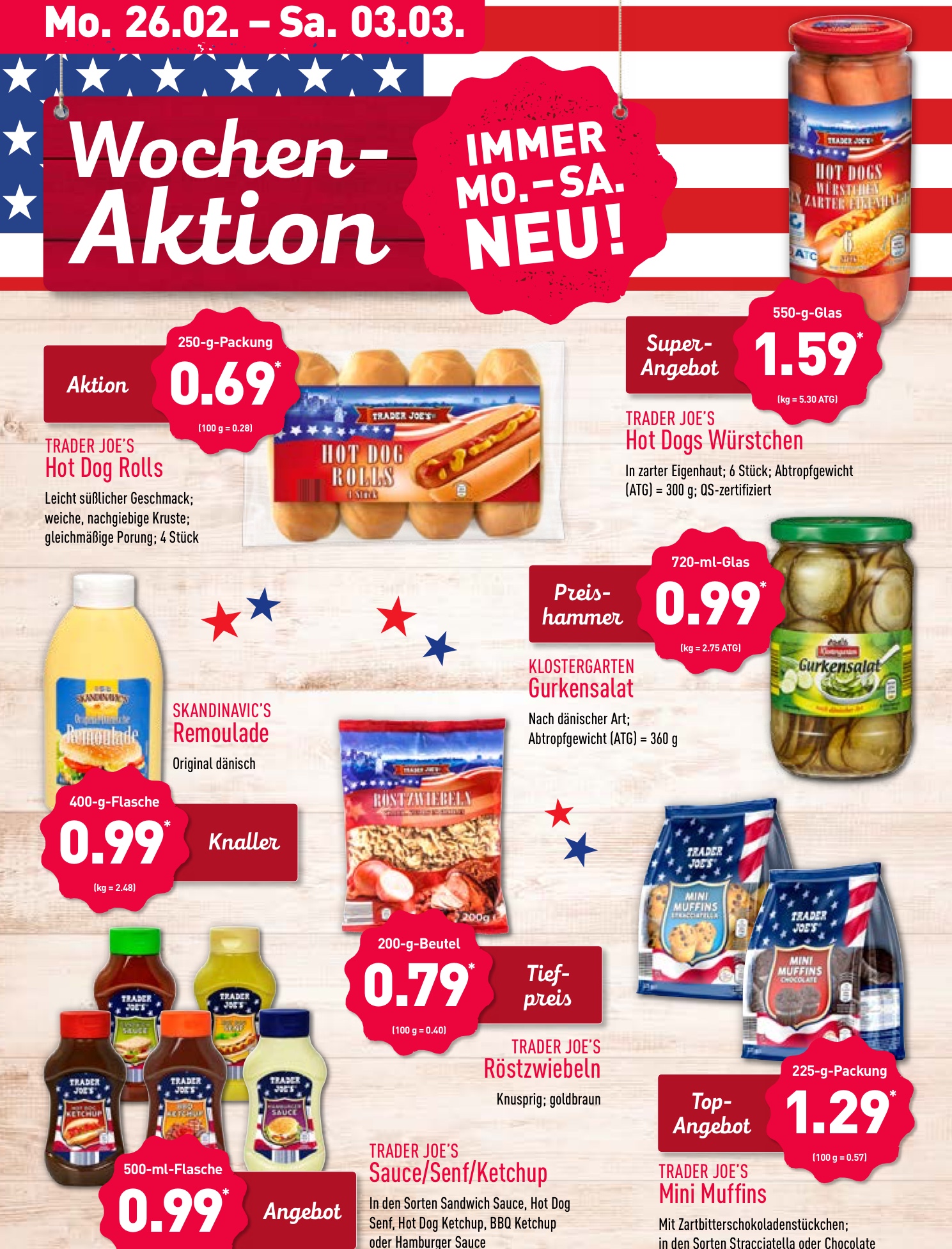 Interessant. Dann könnte Aldi ja auch mal deren Bier importieren. Aber nein, gerade flattert der Prospekt rein, es gibt Hotdogs§11 hat geschrieben: Sonntag 25. Februar 2018, 00:14Nein, ist eine Kette die zu Aldi Nord gehörtMichael Wendt hat geschrieben: Samstag 24. Februar 2018, 19:45Trader Joe‘s? Ist das hier, also im D, nicht eine Eigenmarke von Aldi, u.a. für Erdnüsse?