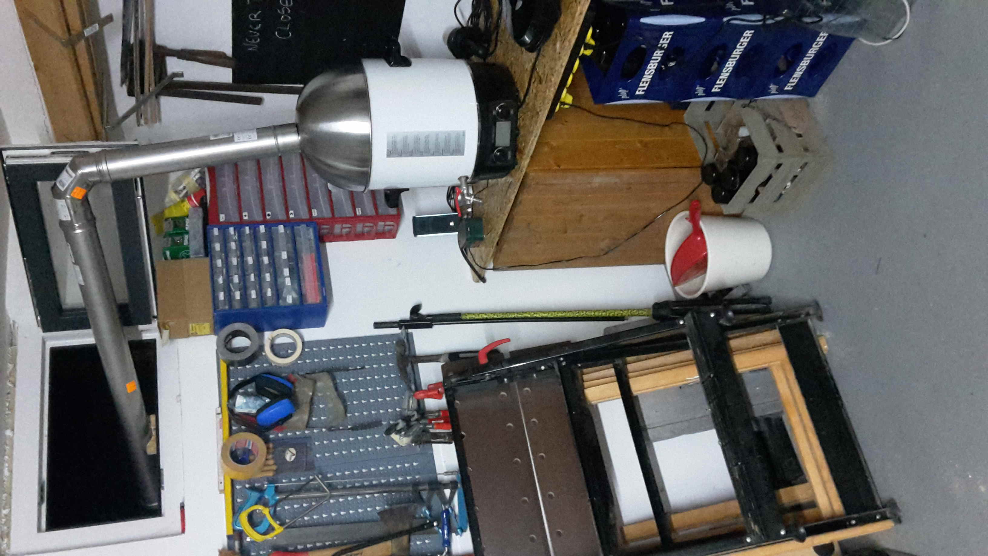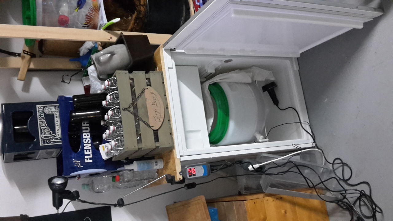 Hier noch einige Bild von einigen unserer Brautage: Der erste große Sud - damals noch mit Läutertonne Der 4te Sud in der Gärung Der letztendliche Aufbau, mit fester Arbeitsplatte. Klein, aber mein :-) Fehlt noch die Brüdenhaube, die im Moment noch in Arbeit ist, von meiner Frau liebevoll "R2Bier2" genannt. Material ist schon da, muss nur noch verarbeitet werden.