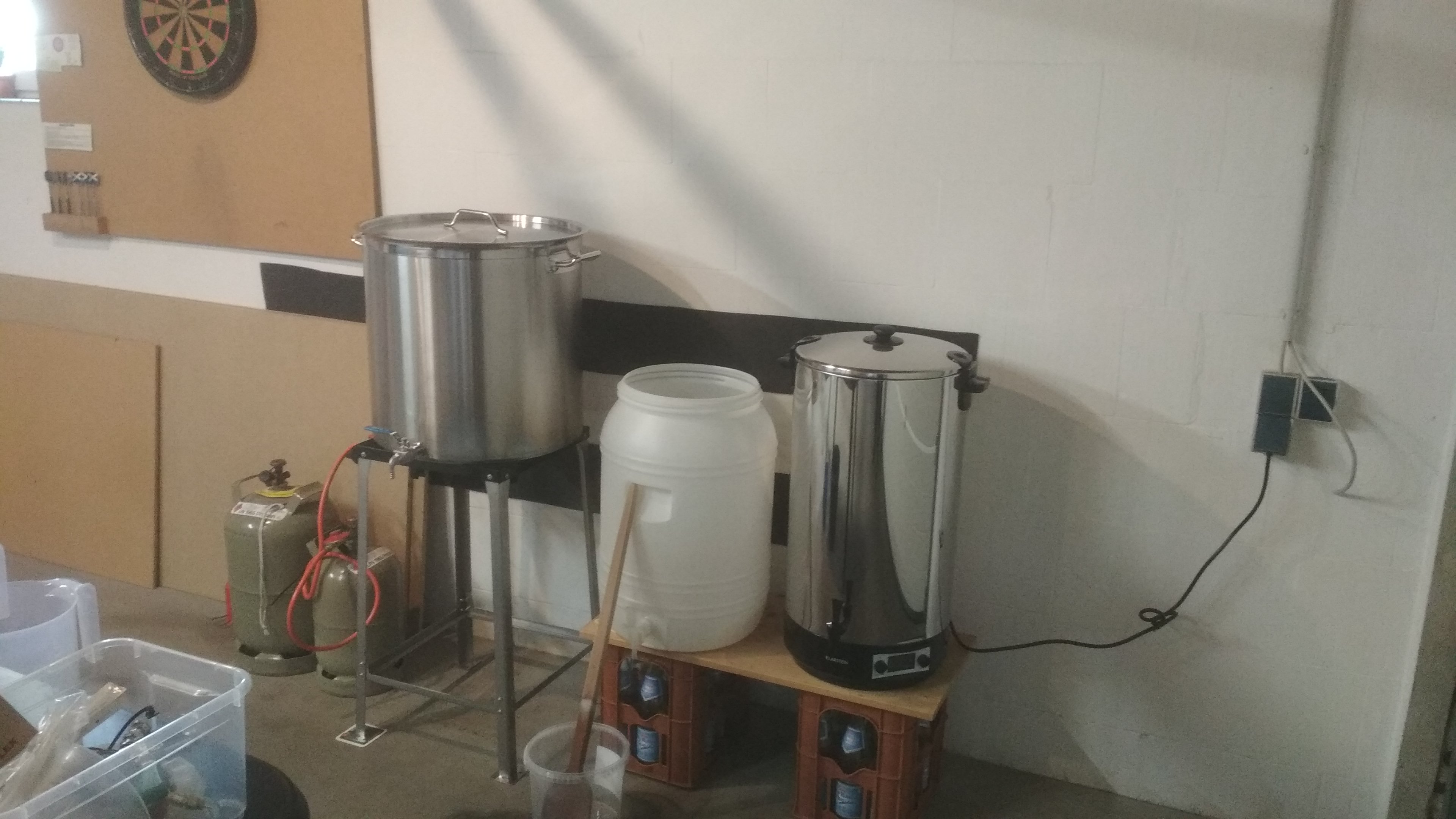 Ich sehe zwei 70l-Contactotöpfe (für Maischen-/Läutern mit Läuterhexe und fürs Würzekochen) und einen 50l-Contactotopf für Nachgüsse vor.