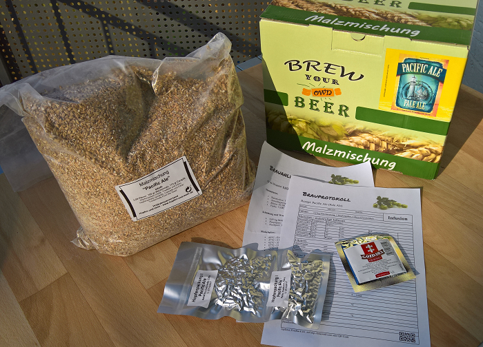 Bei diesem Braukit sind alle benötigten Zutaten passend für die Einkocherklasse - also ca. 20 Liter - abgewogen und abgepackt.