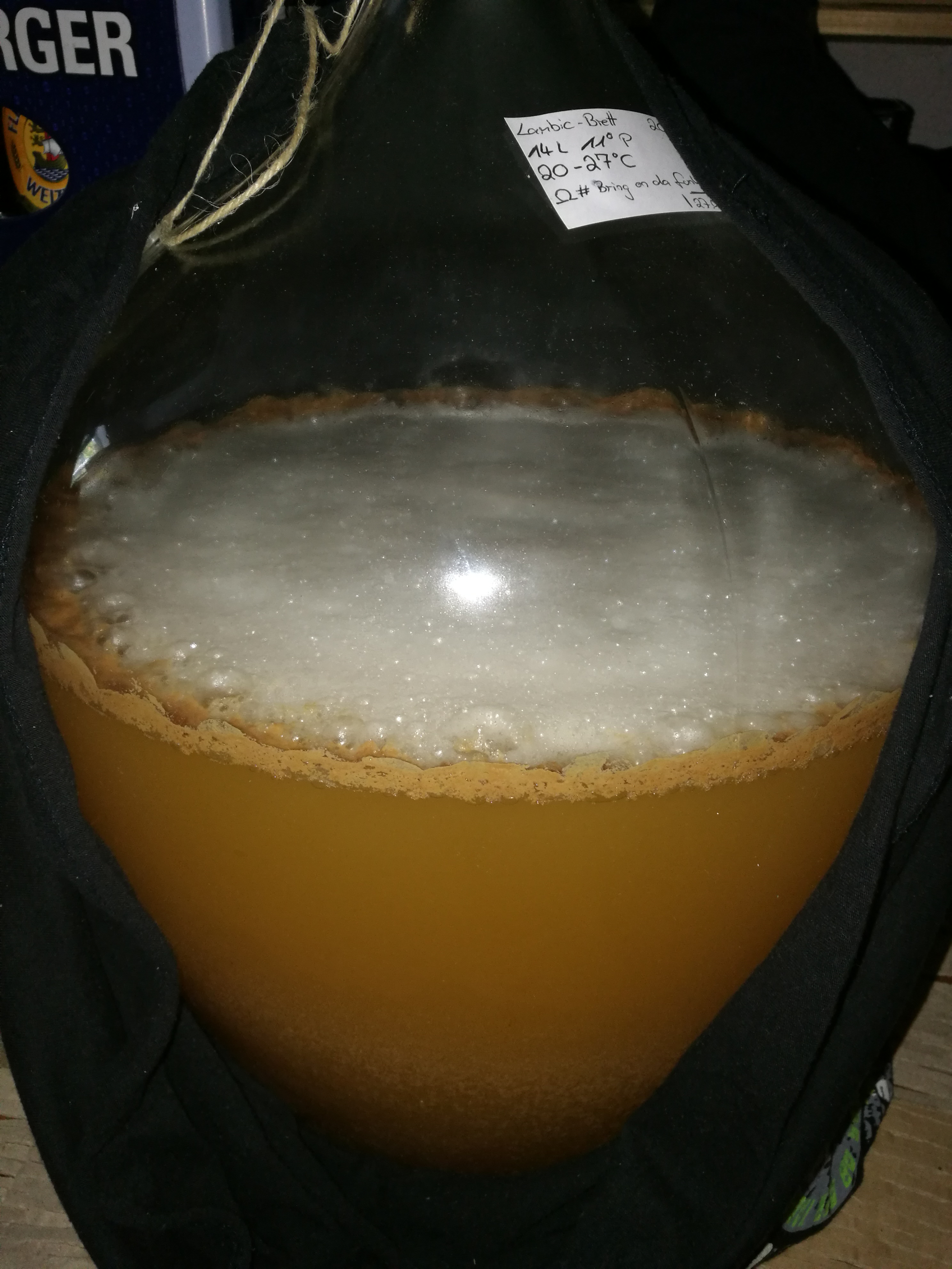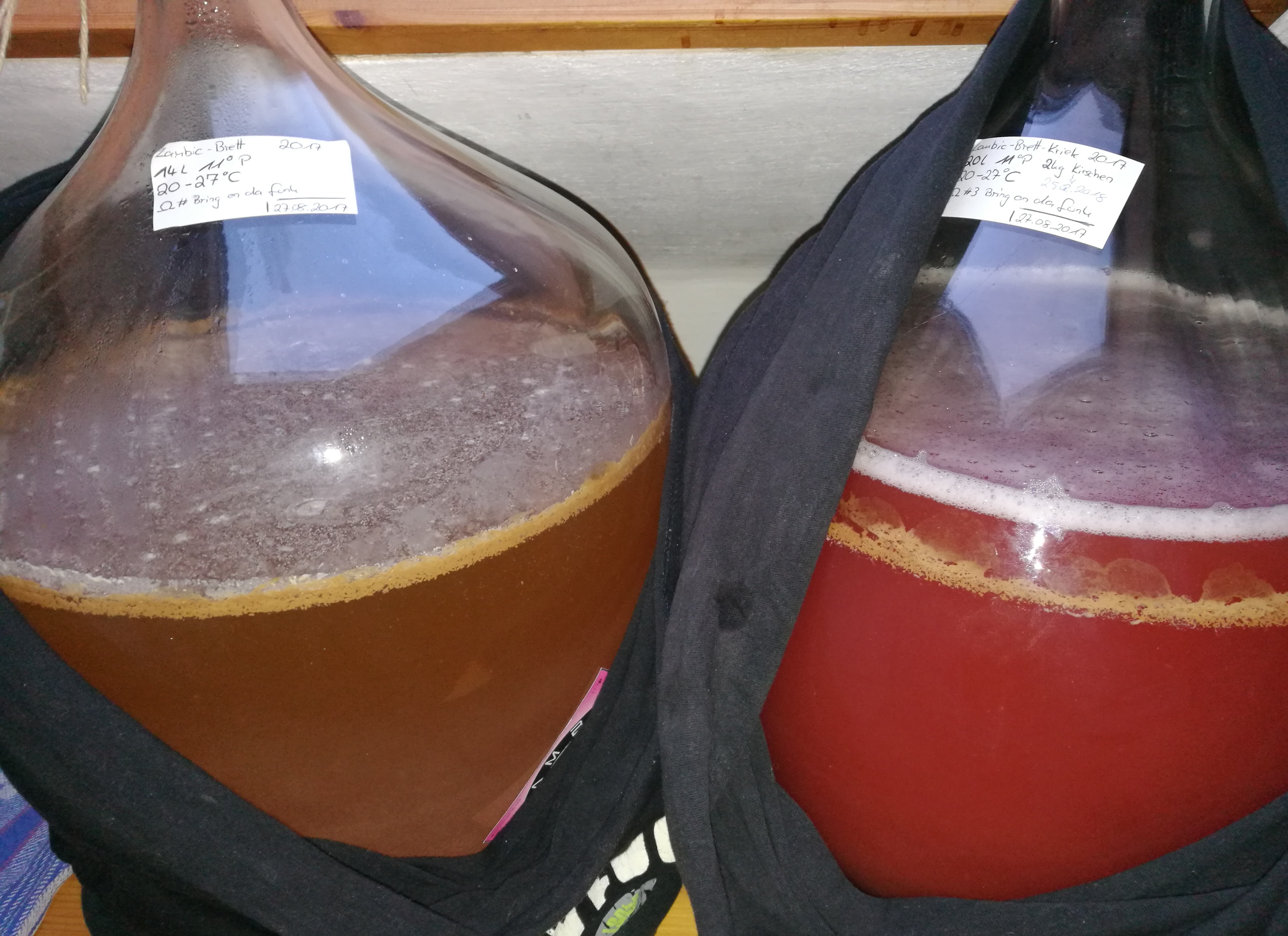 Der Sud wurde in zwei Glasballons aufgeteilt, die aktuell in der Wohnung bei 19-26°C vor sich hin blubbern.
