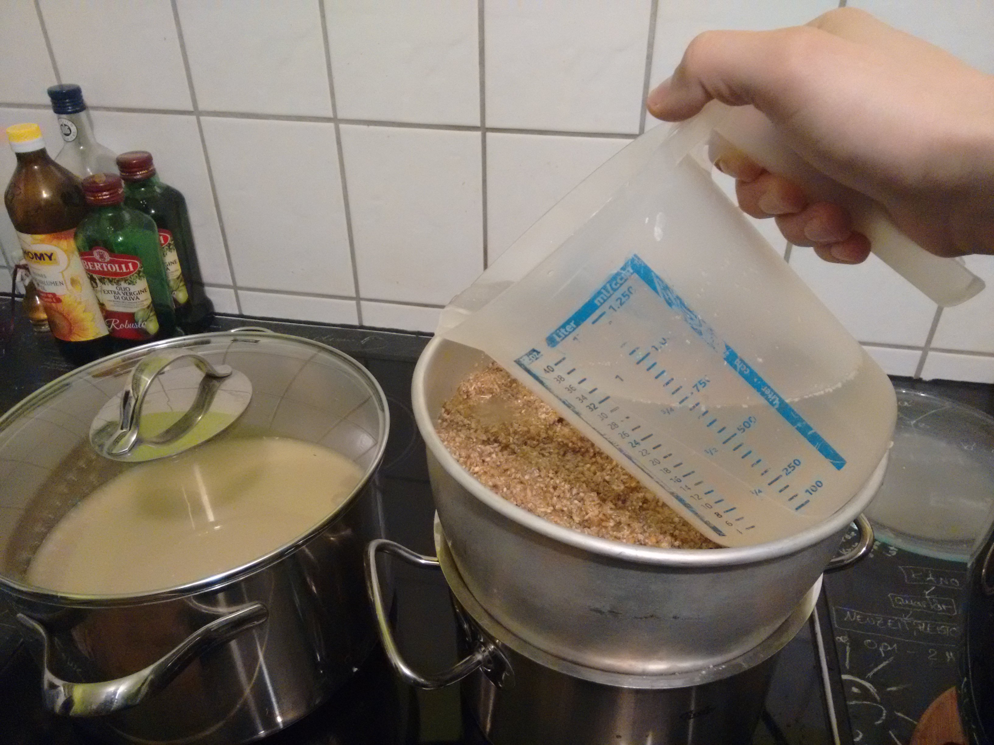 Gute Dokumentation! Für 5L habe ich auch schon Kombirast im Spülbecken mit heißem Wasser gefahren. Heizprogramm ist natürlich Luxus. Reicht bei den Mengen nicht auch ein großes Passiersieb zum Läutern? Für 8L Ausschlagwürze empfiehlt sich ein Thermobehälter.
