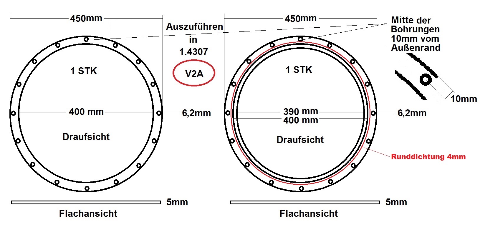 Es musste jetzt noch ein VA Tank her, sollte aber ein Drucktank sein und erschwinglich. Also den 60L Tank von H&M gekauft, ein 400er Klöpperboden, zwei Flanschringe anfertigen lassen und das ganze zusammengebrätzelt.