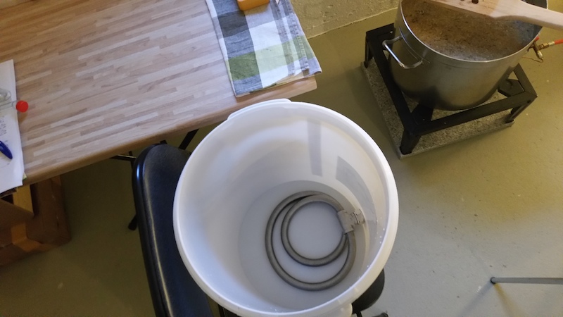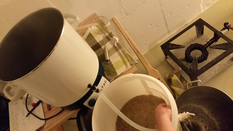 Jodprobe war dann wohl okay, beim Verhindern von Feststoffen auf der Untertasse muss ich noch üben. Dann gleich den Nachguss angeschmissen im 30l Einkochtopf: