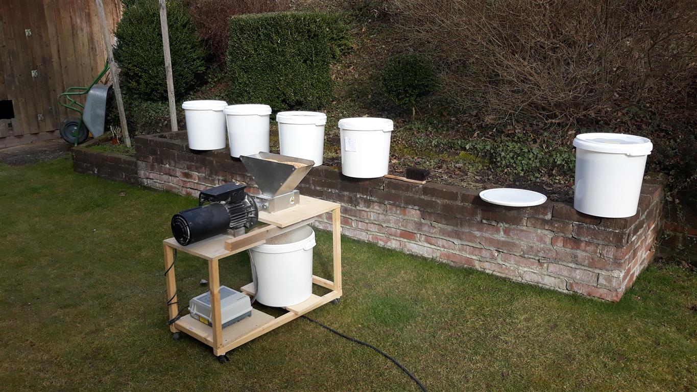 So... Hier die Bilder vom Samstag. Hat alles super funktioniert und die Ausbeute war phänomenal. Es sind 220 Liter geworden.