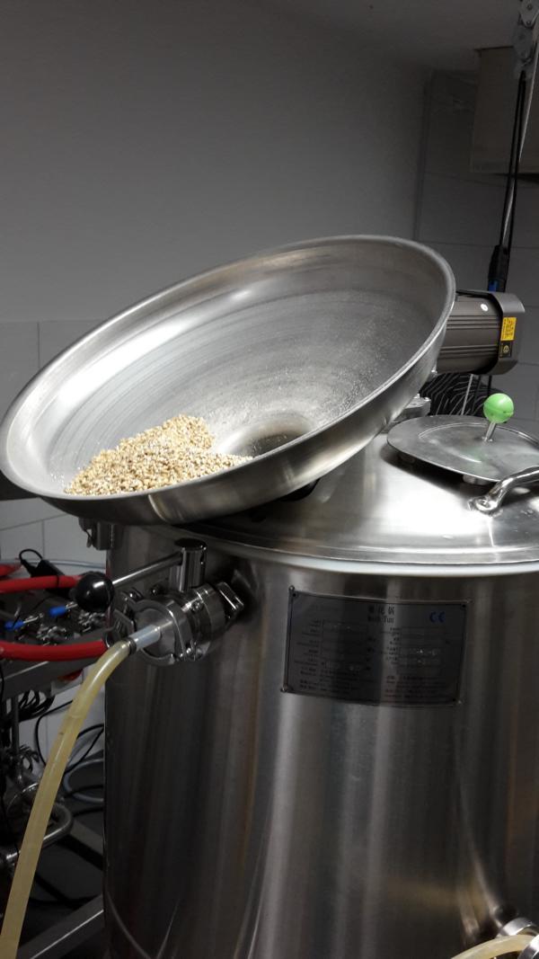 Wer vermutet, dass anstelle von Malzschrot Hopfendolden im oberen Kessel des BT sind, hat richtig geraten. Wie kommt's dazu?