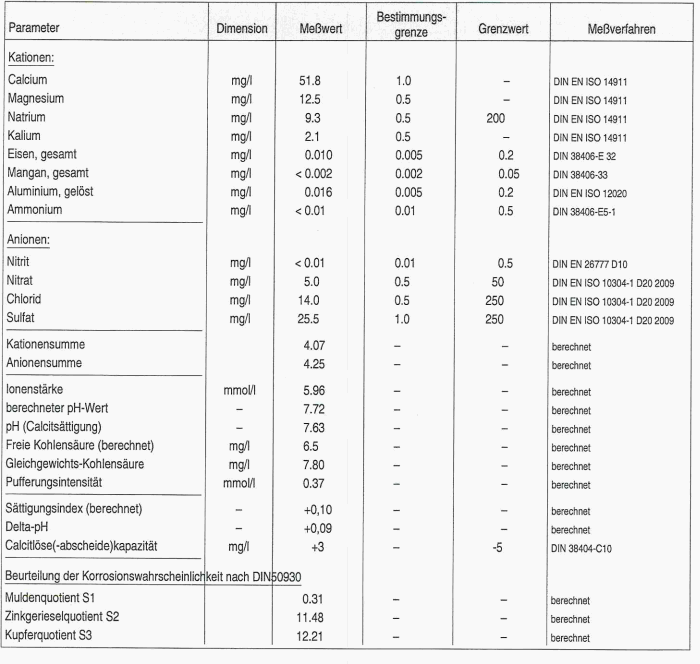Ich habe mir hierzu eine Wasseranalyse von den Stadtwerken besorgt.