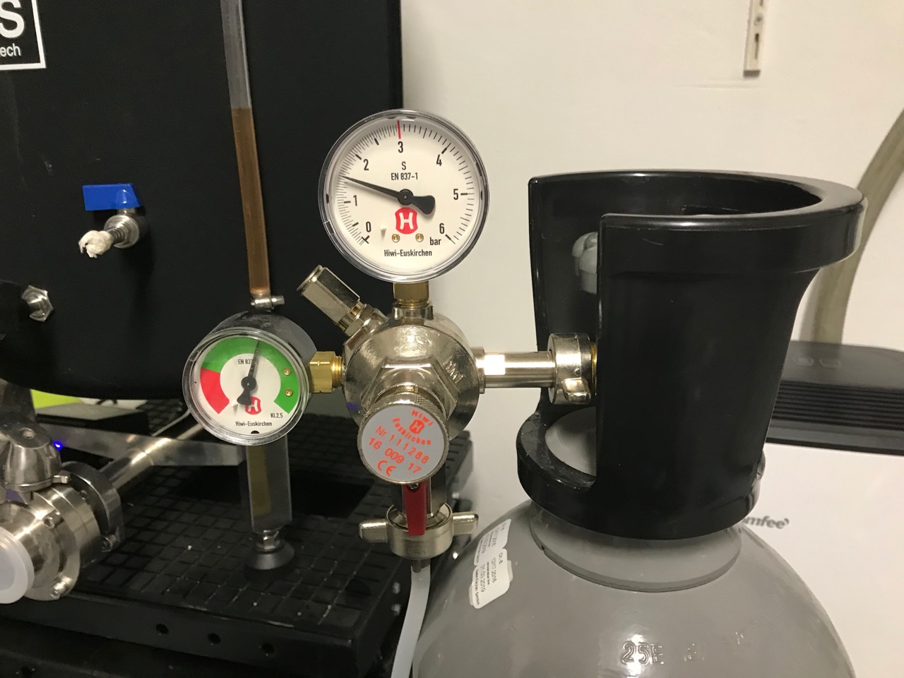 Bei einer Karbonisierung von 5g/L ist ja auch kein so extrem hoher Druck erforderlich.