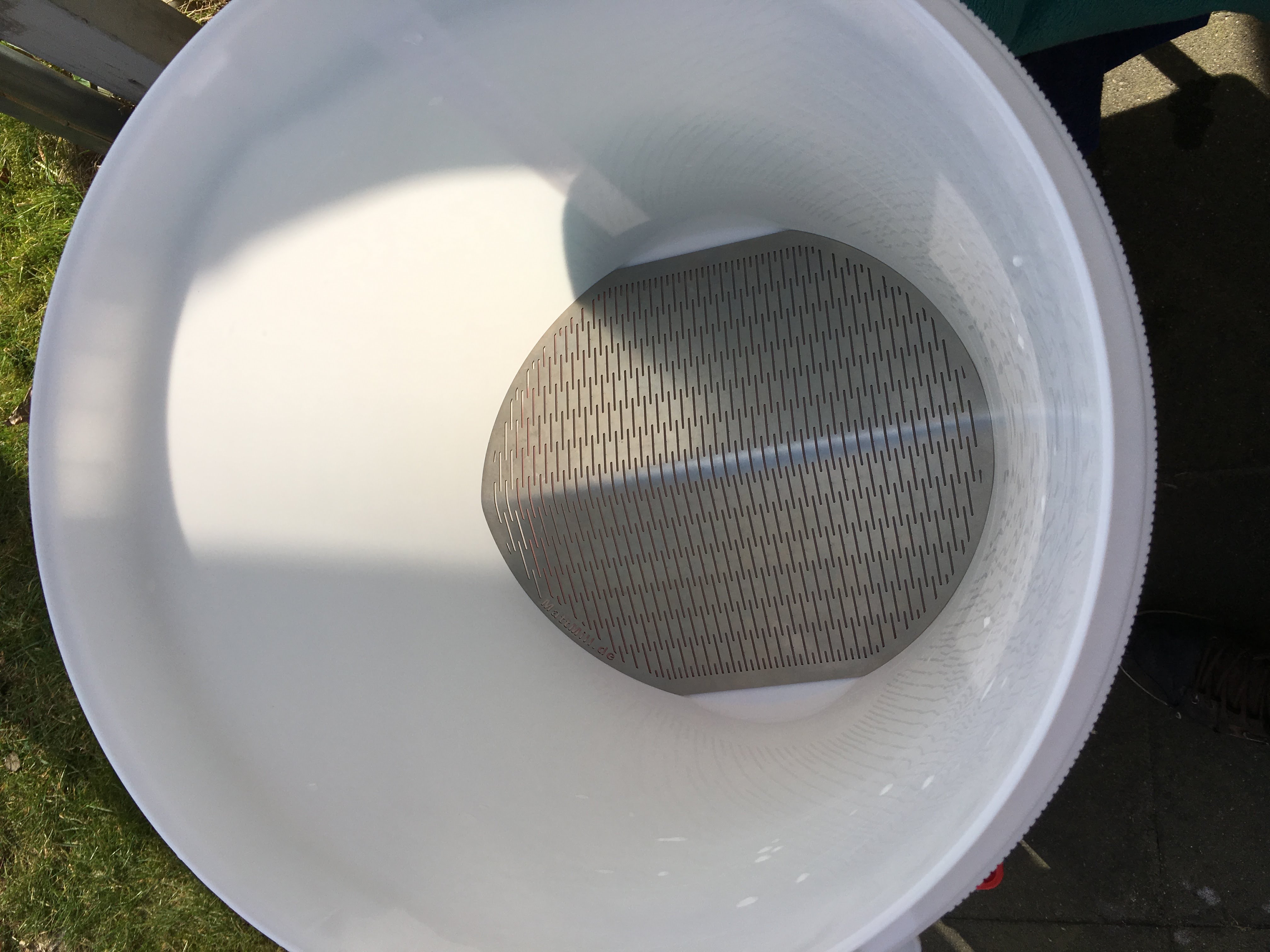 Das Läuterblech ist geknickt und relativ stabil, allerdings kenne ich das nur für diese weißen 30L Gäreimer.