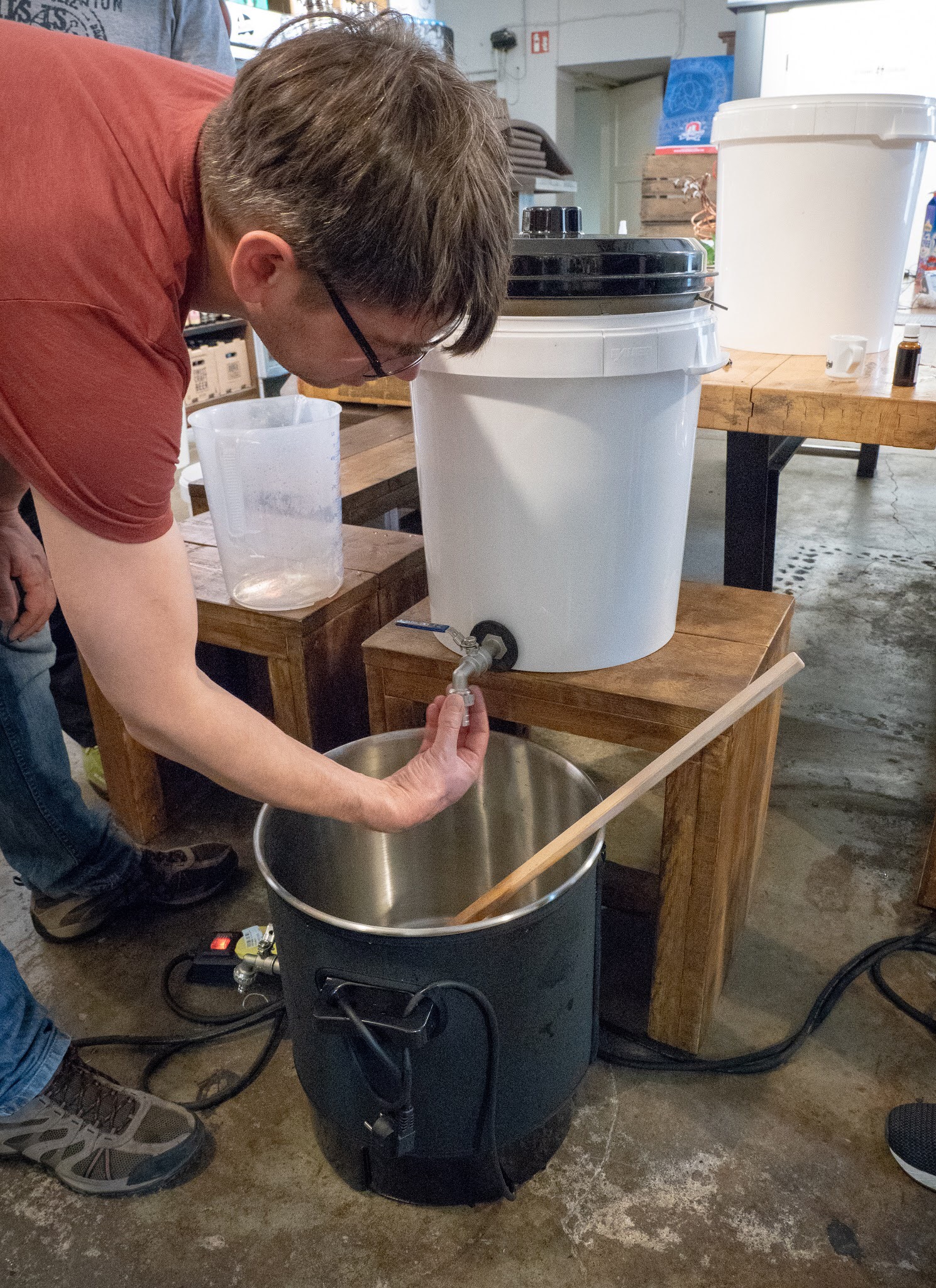 Die Sude haben wir dann runtergekühlt und im Keller vergoren.
