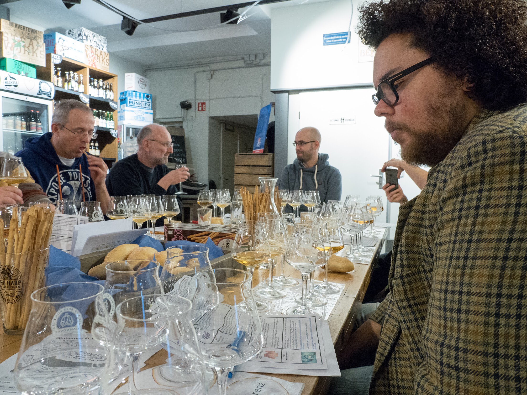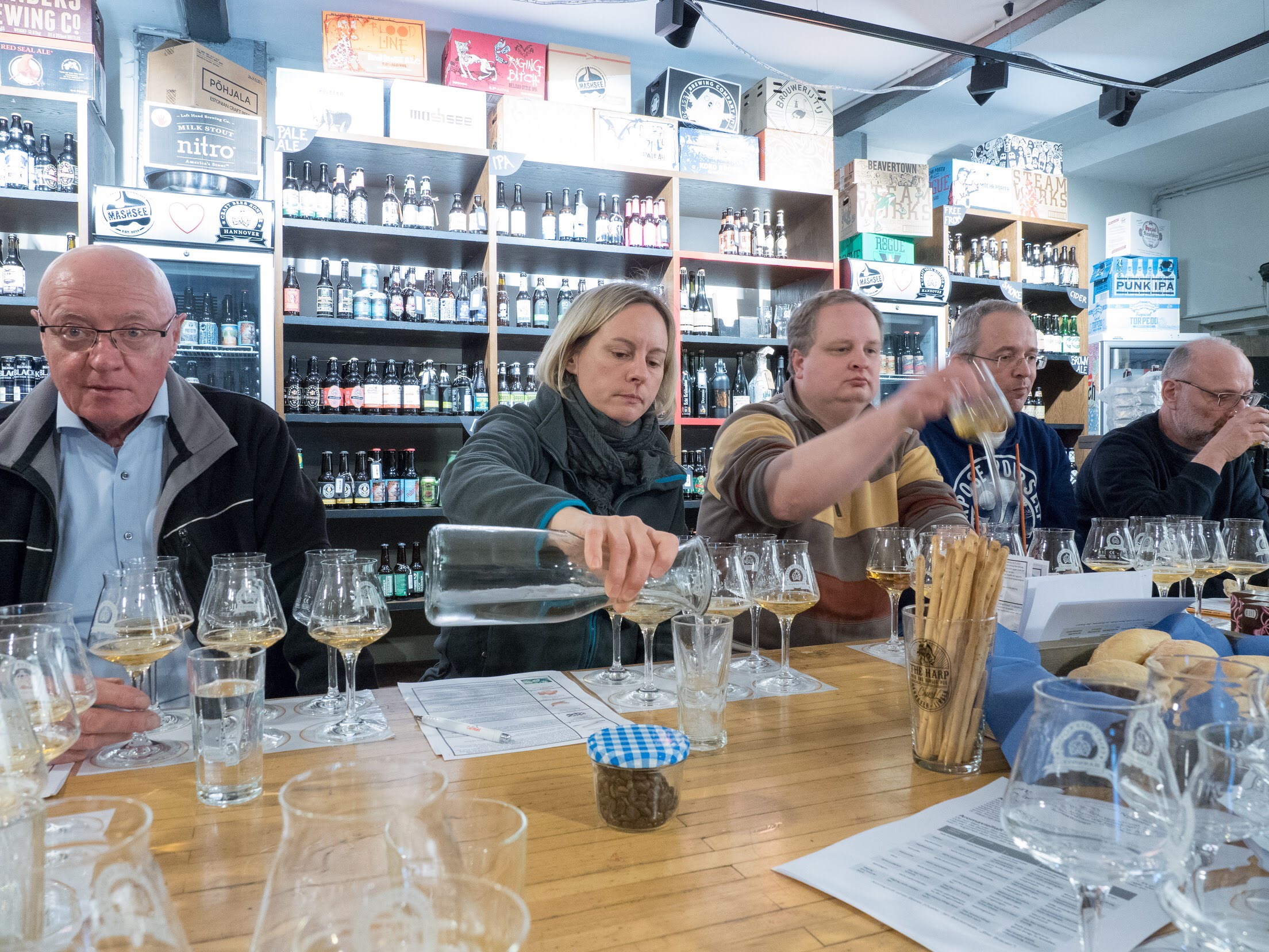 Nachdem Olli einen kleinen Vortrag über Aromen im Bier und ihre Herkunft gehalten hat ging es los.