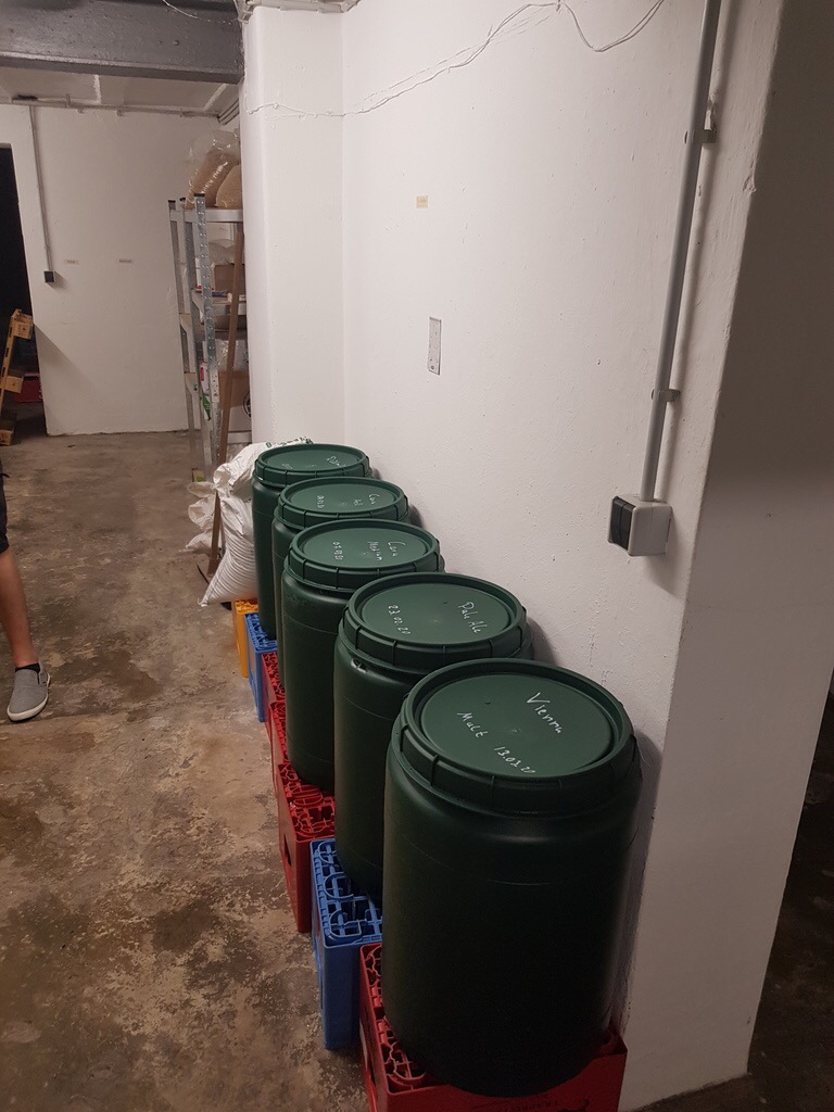 Die Sude haben wir dann runtergekühlt und im Keller vergoren.