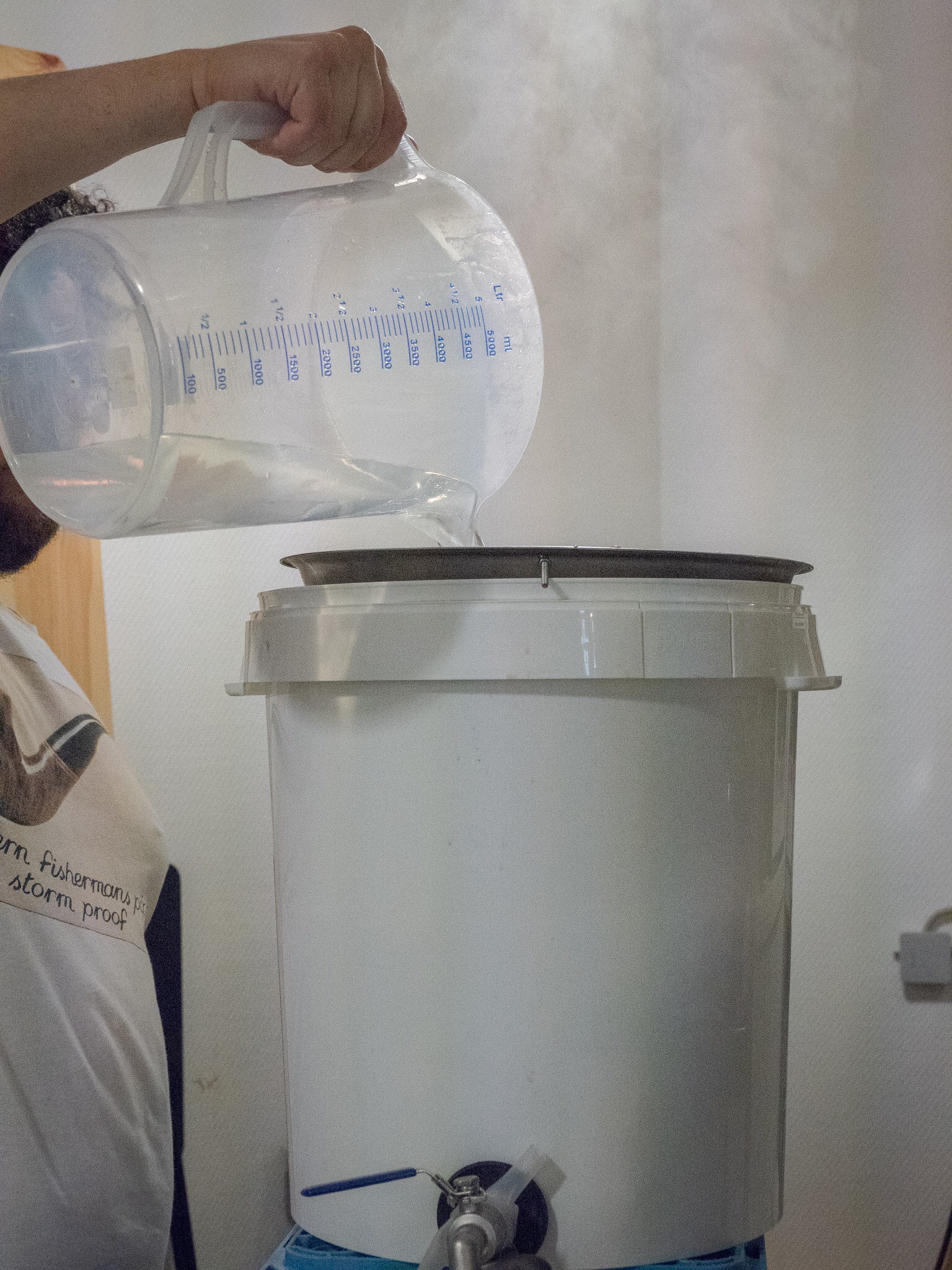 Die Sude haben wir dann runtergekühlt und im Keller vergoren.