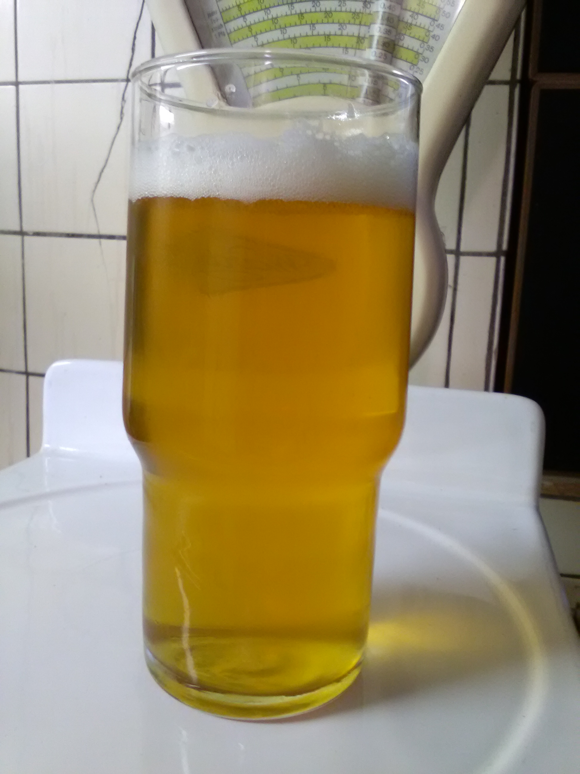 Mein erstes ist gut geworden ein leichtes Sommerbier und guter Durstlöscher den sogar Pilstrinker ohne zu Murren trinken. Die bittere könnte etwas stärker sein aber das kann an meinem hopfen, der nur in einer verschlossenen Dose eingefroren ist liegen. Da werde ich morgen einfach die Menge etwas erhöhen.