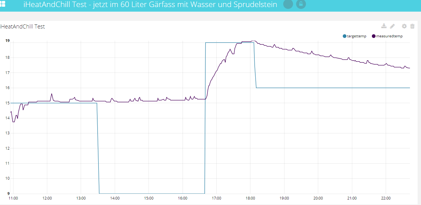 DerDerDasBierBraut hat geschrieben: Montag 7. Mai 2018, 22:17 Das Überschwingen ist absolut OK. Es liegt einfach daran, dass die 200W im Moment überhaupt kein "Gegengewicht" als Kühlmasse haben. Das Teil pumpt gerade 3 Liter Wasser im Kreis. Bei 10 Litern hat es eine Hysterese von +-0,3°C ohne Gegenheizen / Gegenkühlen.