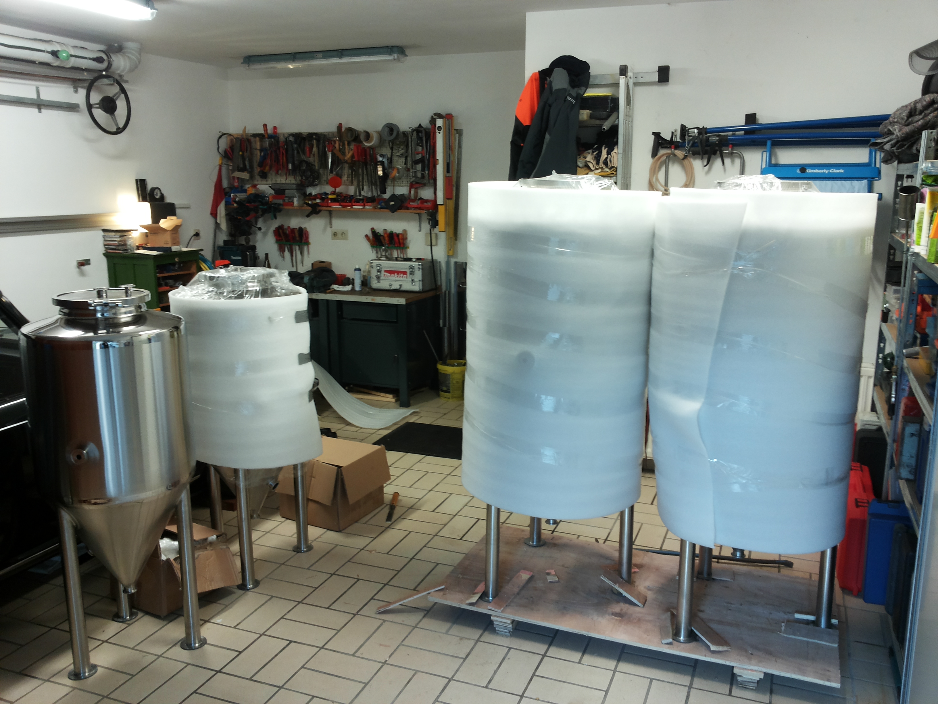 Wie auch immer, bin glücklich, dass die Teile jetzt bei mir im Keller stehen. Philipp und Stefan können es vermutlich auch nicht mehr abwarten, ihren Tank in Empfang zu nehmen. Letztlich sind es 2*130l und 2*260l geworden, jeweils einer ist für mich bestimmt. Um die Spannung etwas zu lindern, hier ein paar Bilder.