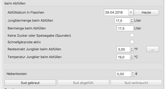 1. Ist es gewollt, dass nach dem Klick auf "Sud gebraut" die Werte unter "bei Abfüllung" teils wieder mit anderen Werten überschrieben werden? Die Stammwürze und Temperatur wird überschrieben. Fände es besser wenn die bereits eingegebenen Werte beibehalten würden: