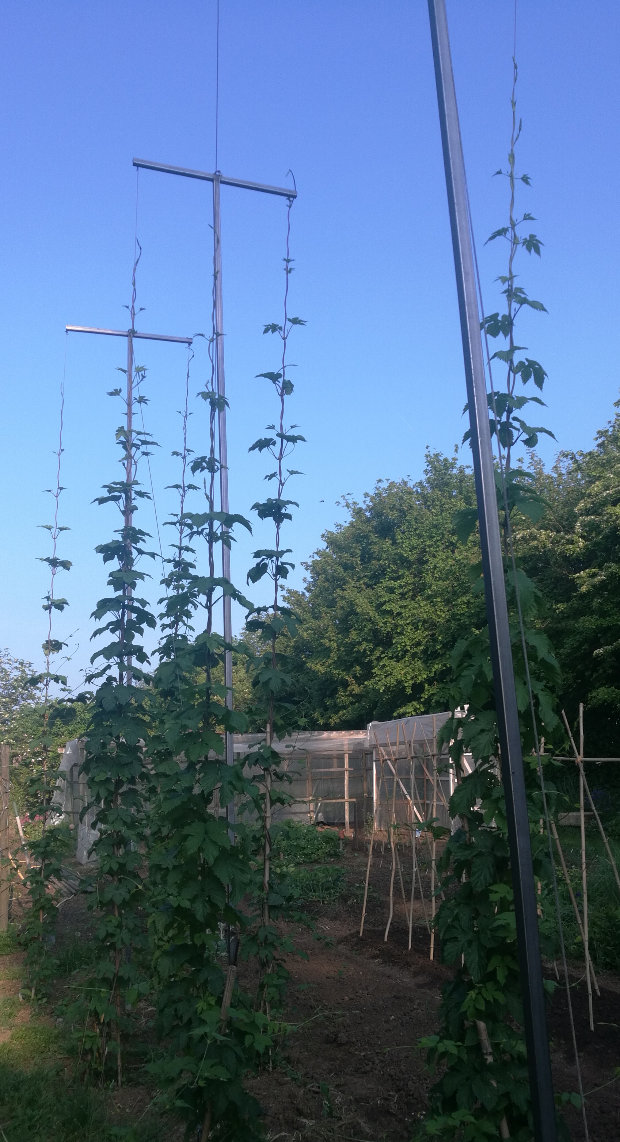 Ich bin erstaunt, wie schnell der Hopfen gewachsen ist. Innerhalb von zwei Wochen hat der ca. 1,50m gemacht....