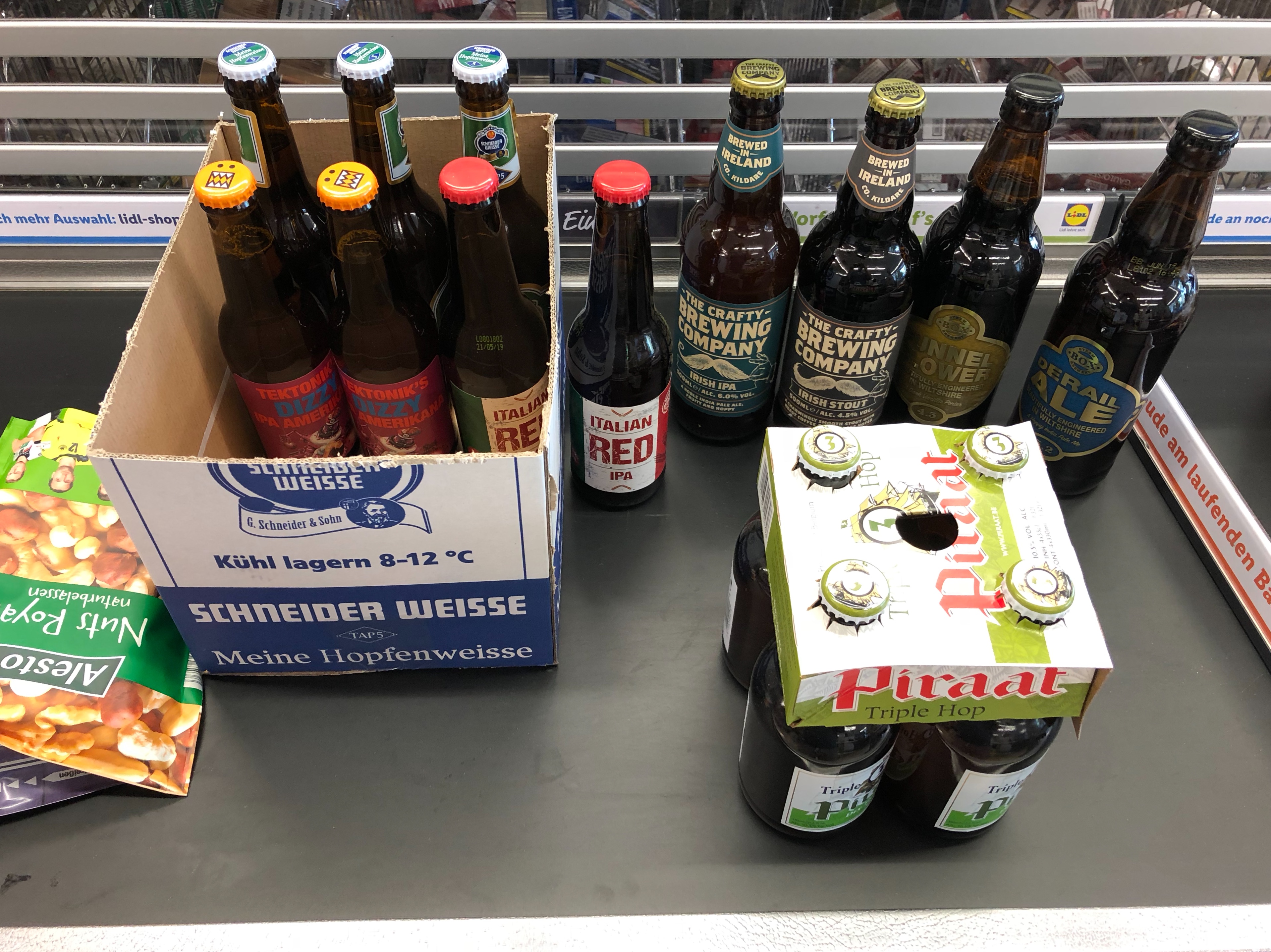 Hatte das am Samstag dann auch endlich in einer meiner Lidl Filialen entdeckt und direkt ne gemsichte Palette eingepackt. Für den Preis finde ich die Biere auch vollkommen in Ordnung. Natürlich ist das auch eher etwas "Mainstream" gehalten, aber warum auch nicht? Das German Red war mir etwas zu süß und mastig, meine Frau fands aber sehr lecker. Das IPA ist ausgewogen Bitter mit zitronigen Hopfennoten. Fand ich nicht schlecht. Das Stout ist für Liebhaber dieses Bierstils vermutlich nicht röstig genug, für mich so aber gut trinkbar und lecker. Ich bin aber auch nicht so der Stout Fan.