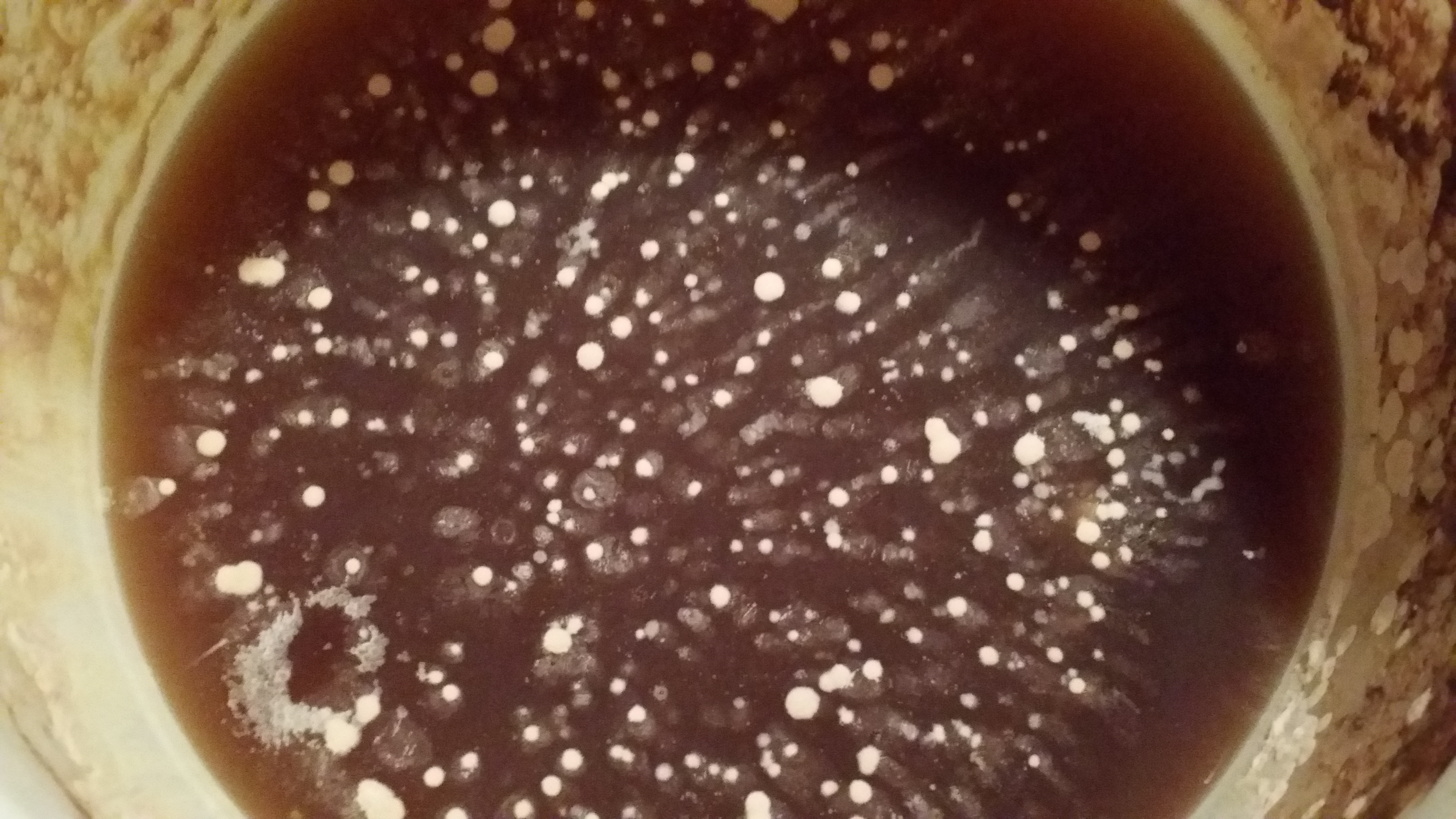 Falls das nach ein paar Tagen nicht weggeht, könntest das mal abschöpfen und schauen, was danach noch kommt. Dabei aber unbedingt sauber arbeiten.