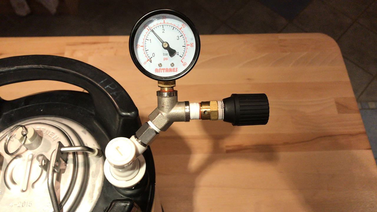 An das Manometer könnte man tatsächlich noch über ein T-Stück das Brewhardware Spundventil anbauen, dann hätte man zwei. Das wäre auch nicht schlecht.