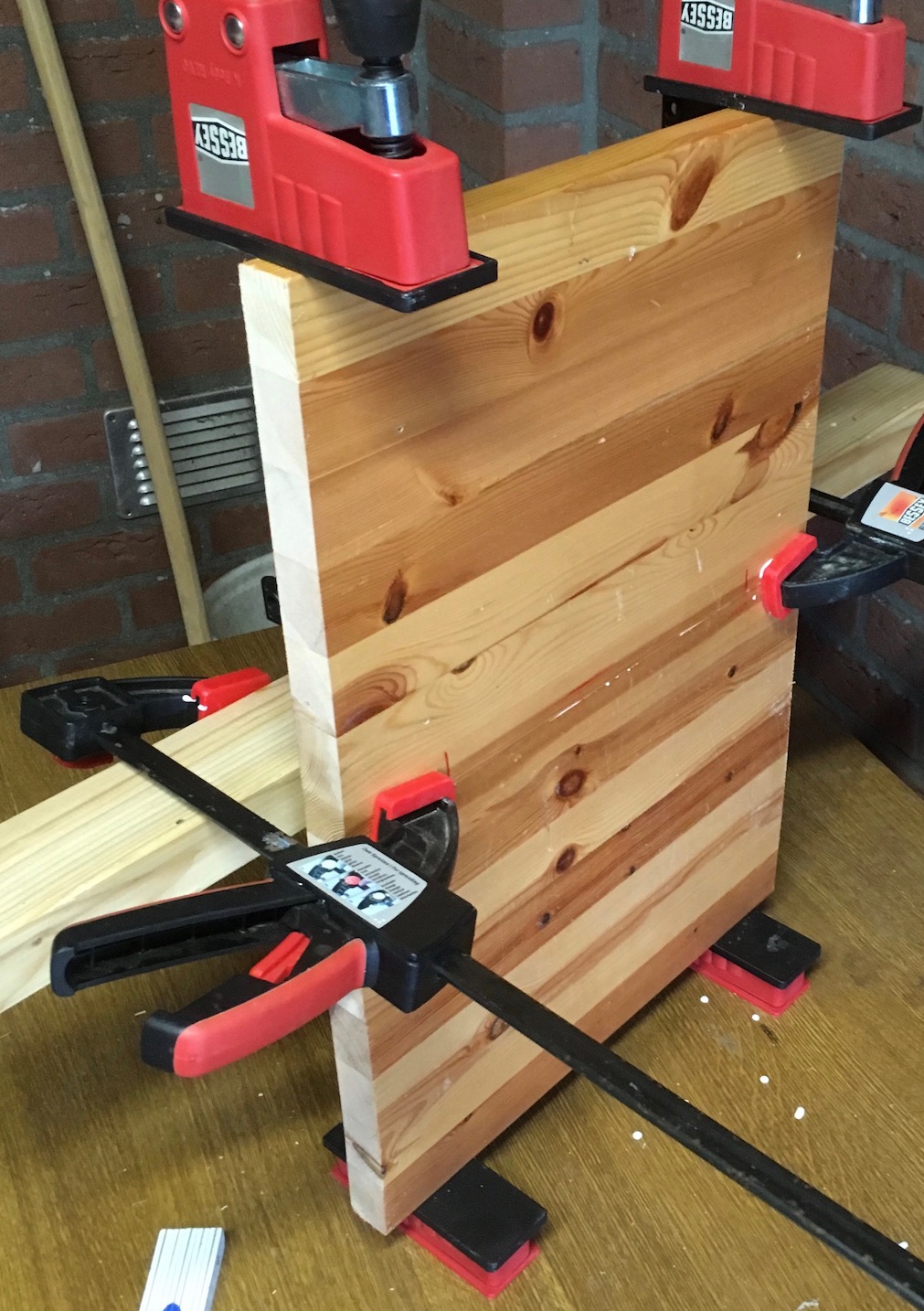 Die zugeschnittenen Platten habe ich dann, soweit nötig, zusammengeleimt.