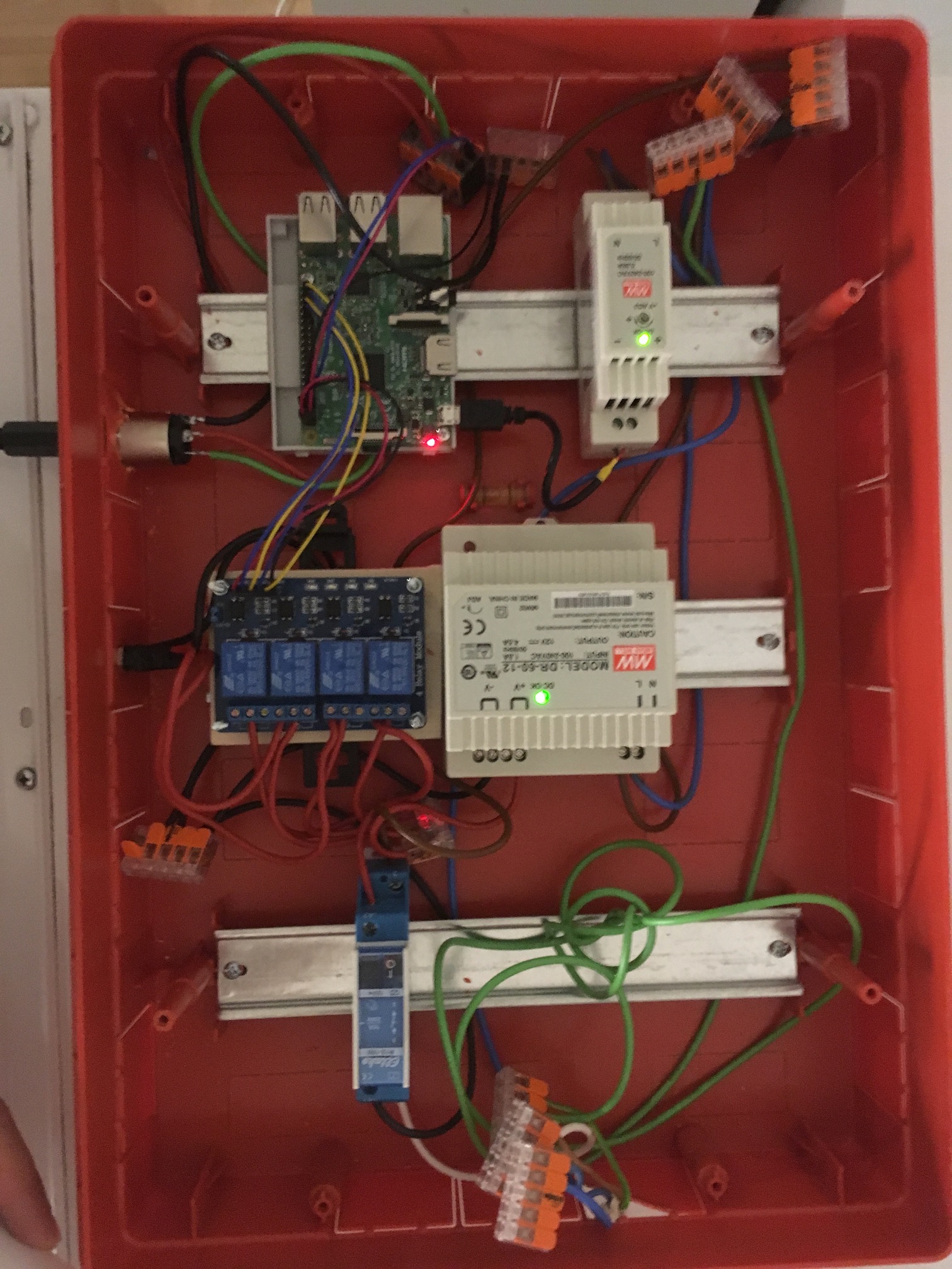 Aktuell ist noch alles über WAGO-Klemmen montiert, da es noch in der Beta-Phase ist, irgendwann mach ich das nochmal richtig