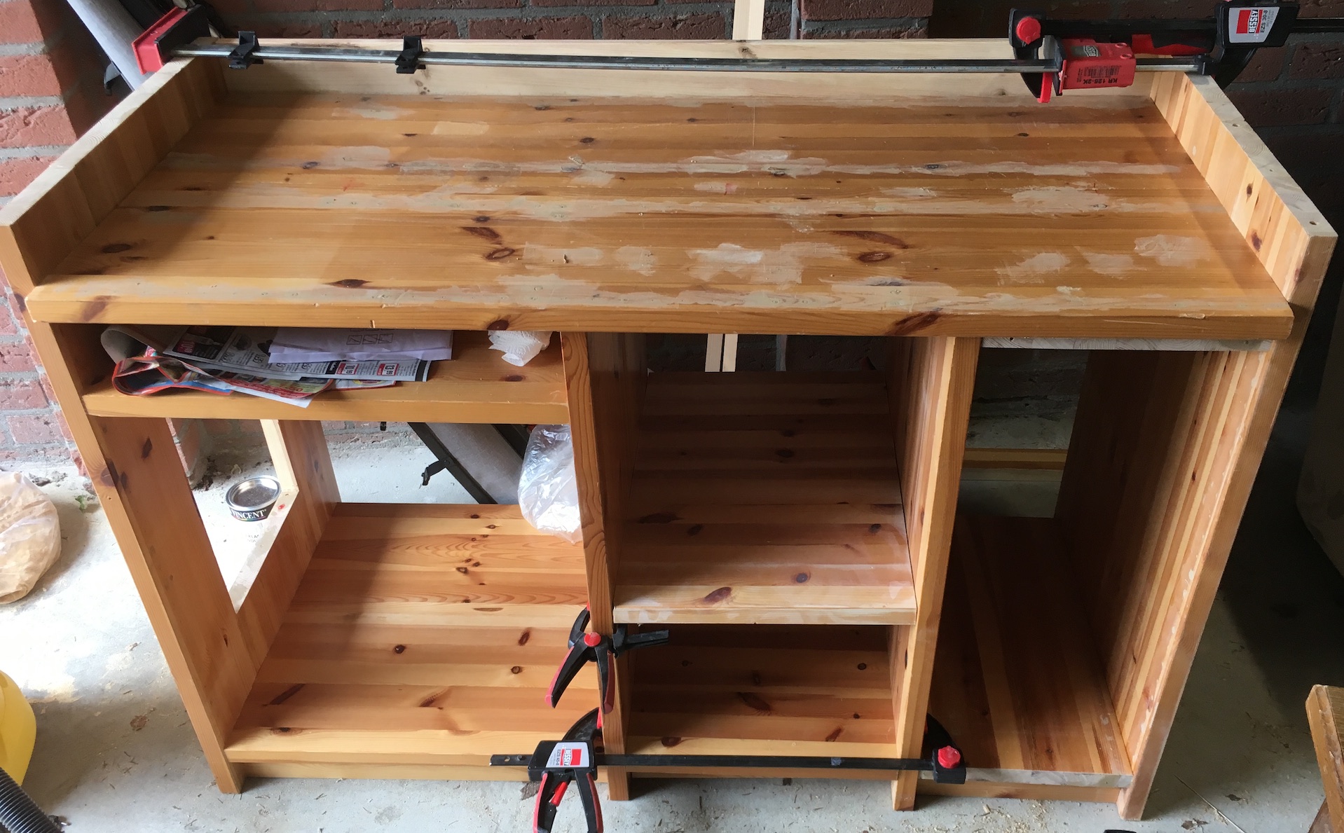 Die Platte oben drauf muss natürlich noch geschliffen und lackiert werden, man sieht noch die ganzen Stellen an denen ich spachteln musste :D