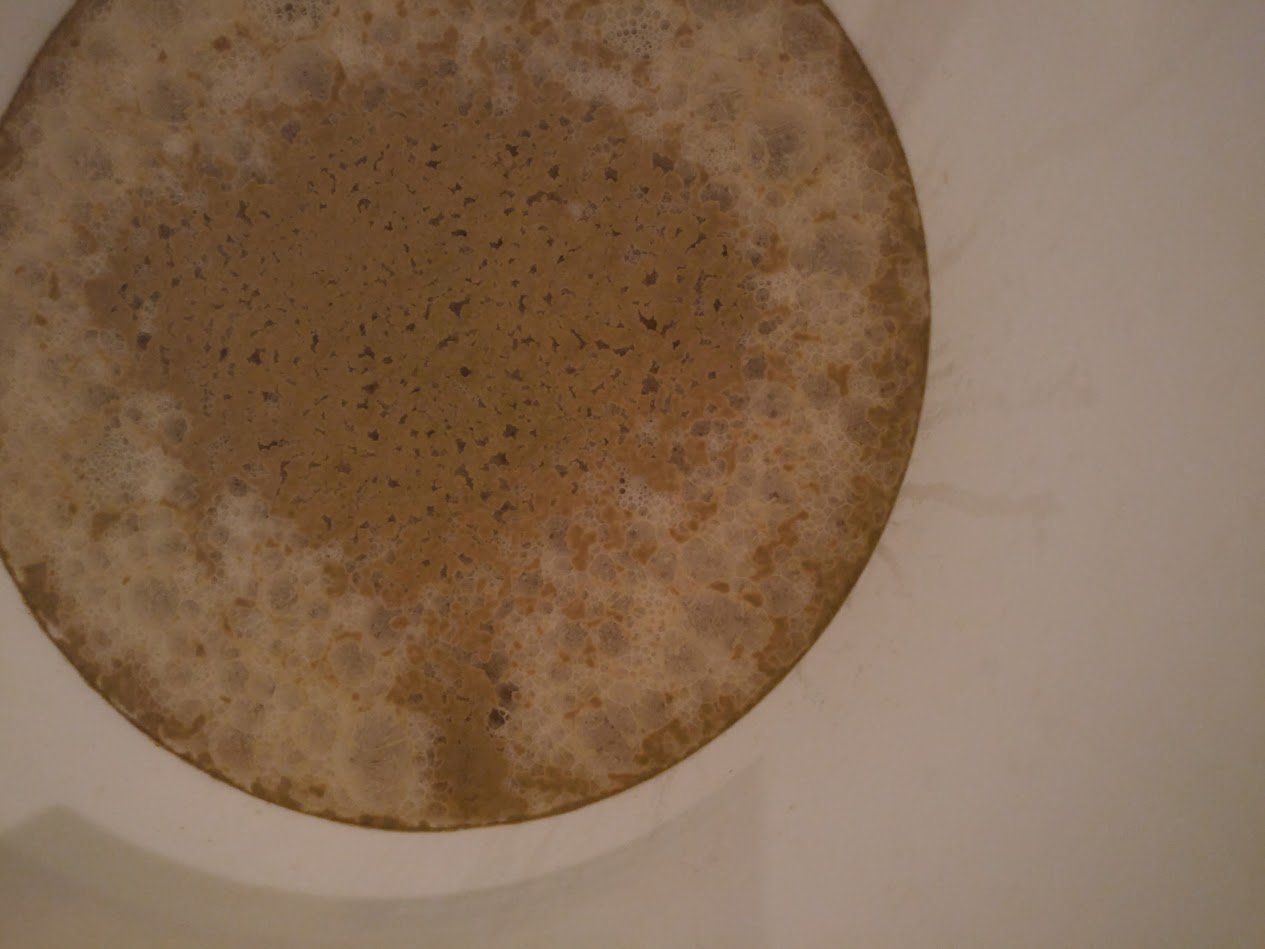 Das Brauen hat soweit alles gut geklappt, ich war nur etwas irritiert weil die Hefe (US-05) irgendwie nicht so in die Gänge gekommen ist wie ich es gewohnt war. (dh. auch nach 48h kein Blubbern im Gärspund) Heute habe ich dann mal nachgesehen, folgendermaßen sieht das ganze aus: