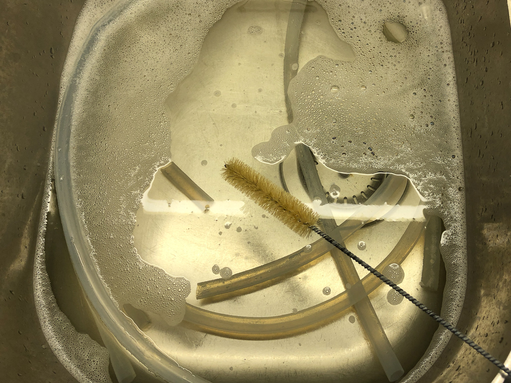 Während der Rasten schonmal ein paar Schläuche putzen