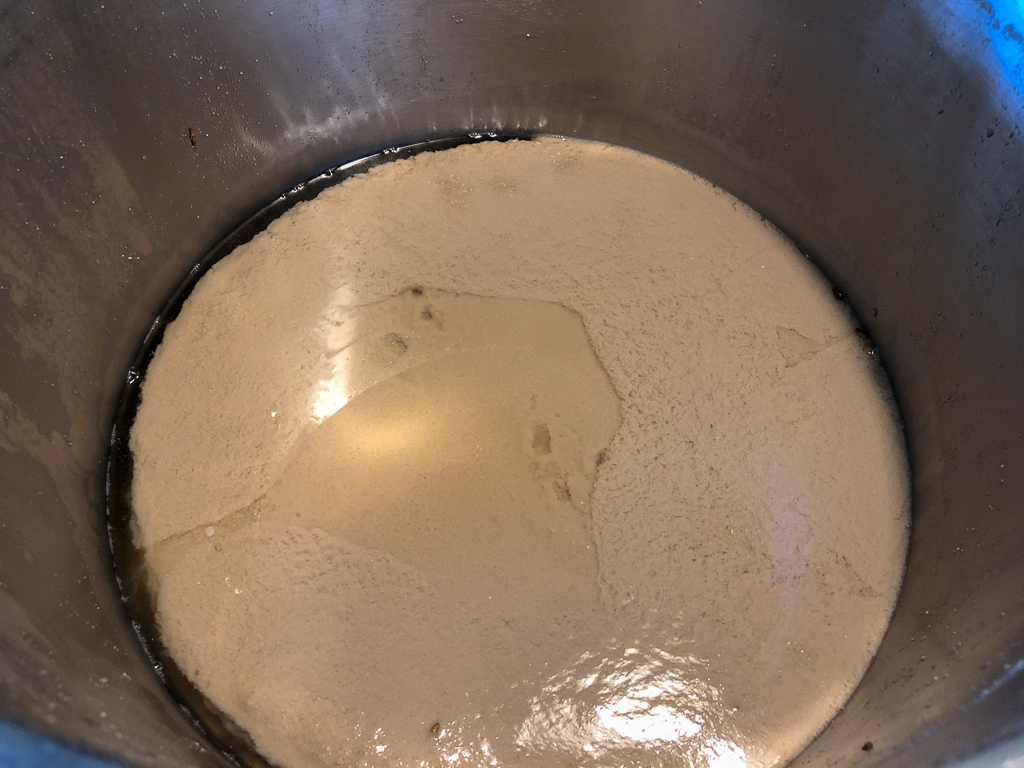 Zu diesem Zeitpunkt wurde mir langsam klar, dass mein Plan für den Doppelsud nicht ganz ausgereift war. Ich hatte geplant während die Würze des IPAs kocht, schonmal die Maische für das Märzen herzustellen... Irgendwie habe ich erst jetzt gerafft, dass dies mit nur einer Heizplatte ziemlich unmöglich ist... Toller Plan und wieder eine Stunde "verloren". :Ahh
