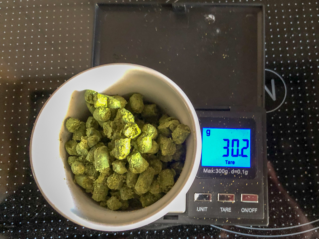 Hopfen für die Vorderwürze abwiegen