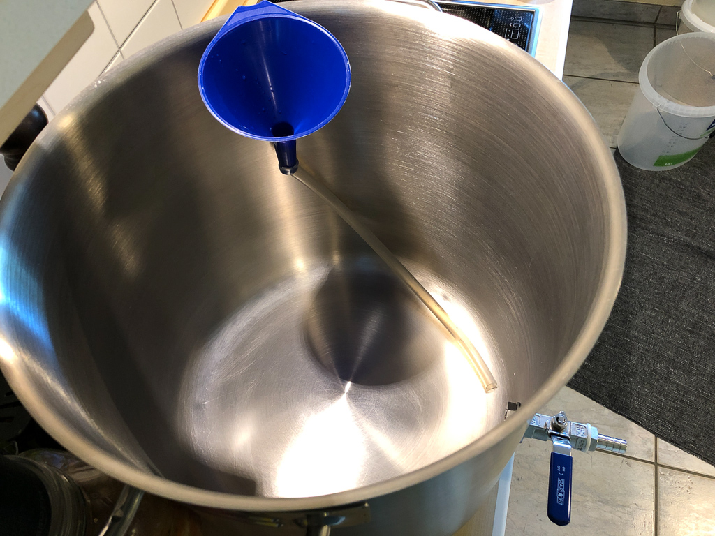 Das Hopfensieb habe ich später wieder entfernt und es stattdessen zum Hopfenseiehn verwendet.