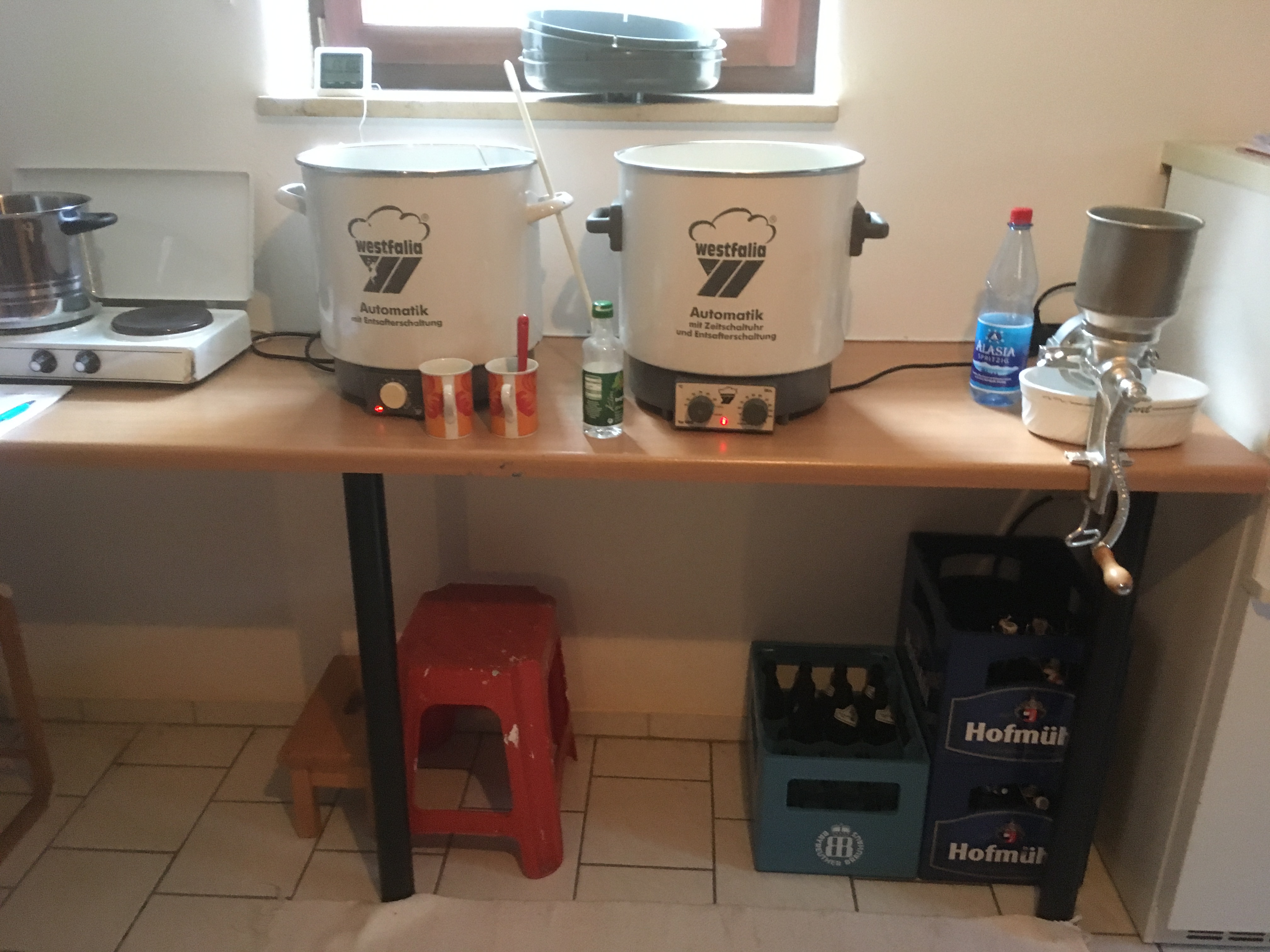Einkocher standen noch zwei im Keller. (leider beide ohne Hahn, wird noch nachgerüstet)