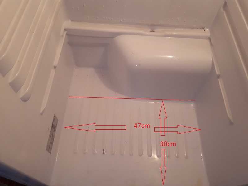 Ich hab nochmal ein Bild gemacht, das erläutert wie ich gemessen hab. Ganz links ist die Tiefe in meinem Fall 40cm, aber das nützt mir halt nix, weil ich trotzdem nur die 30cm Tiefe ausnutzen kann. Ich schlage vor, dass wir deshalb dieses jeweils kleineste Maß in die Liste aufnehmen.