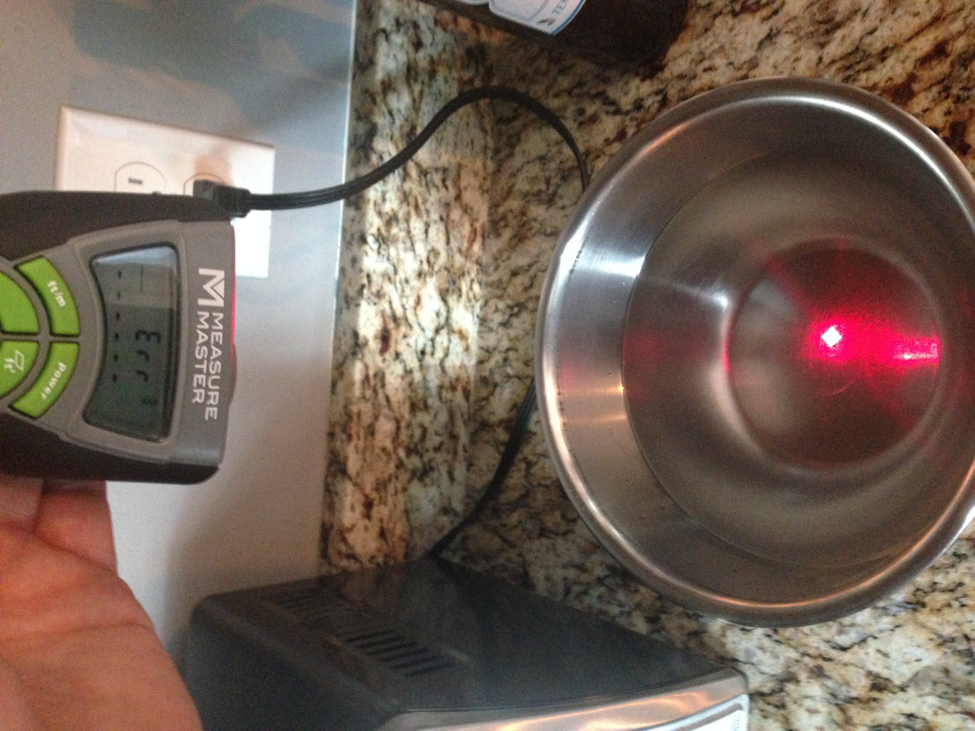 Lasermessungen an reflektierenden Materialien wie blankem Edelstahl funktionieren nicht. Weder bei Abstandsmessungen noch bei Temperaturmessungen.