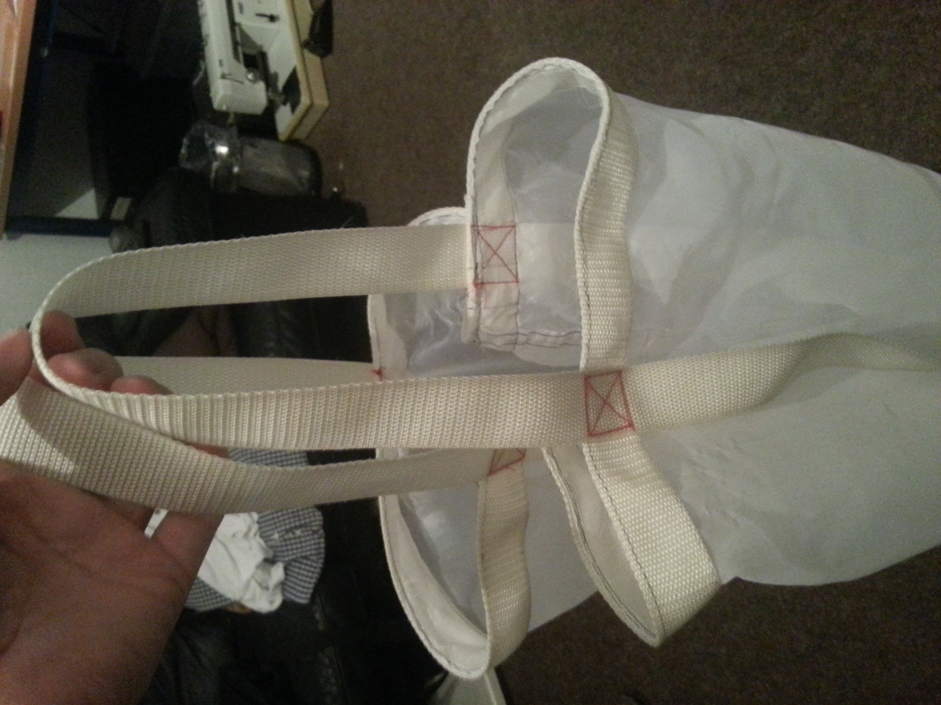 Den Sack hab ich selber genäht, war der erste Versuch, er hält allerdings ganz gut und tut seinen Zweck.